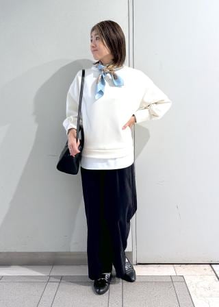 ・どんな骨格にもマッチするやさしいラウンドの襟ぐりと着ぶくれしないシルエット。