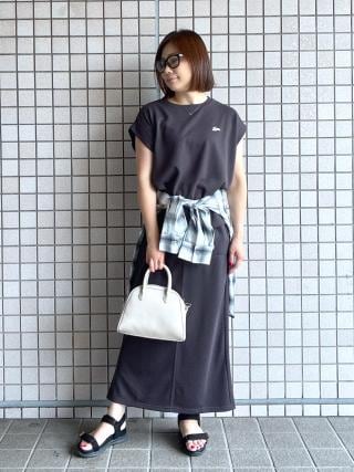 サイドのスリットのお陰で抜け感がでて、トップスをインせずに着てもお洒落に決まります。