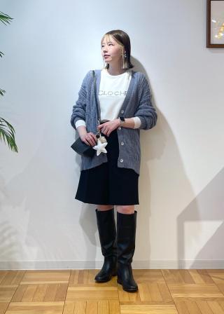 ・ムートンファージャケットや、カーディガンニットのインナーに合わせると、大人の抜け感が演出できるスタイルになるのでおすすめ。