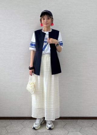 ゆとりがあるので、スカートにはインするとバランスがよいです!