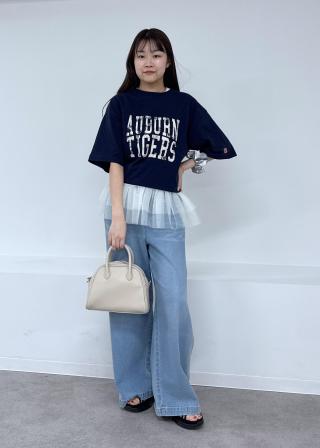 ネイビーに白のロゴが、キレイめの小物やボトムスにも合わせやすいです☆