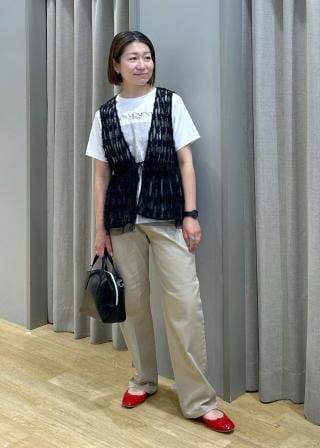 Tシャツ単体で着ると、どうしても部屋着感が出てしまう私。着ないようにしていたのですが、このベストが大活躍!