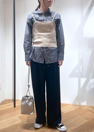 シンプルなコーデにビスチェを一枚プラスするだけで、アクセントになるのでオススメです◎