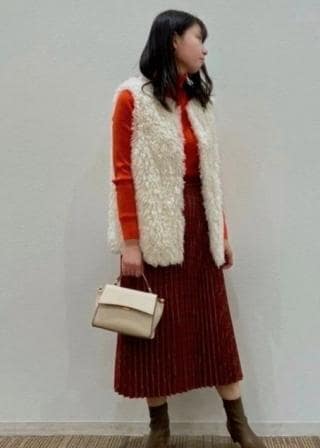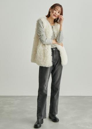 ・秋冬のレイヤードに便利なフェイクファーベスト。