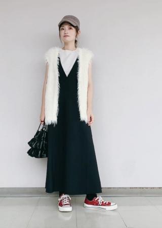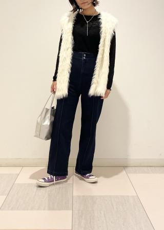 毛足が長い ファーなので、ボリューム感が抑えられていて、太めな私にもスッキリ着ることができます
