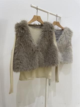 ・ふわふわの質感が可愛らしいフェイクファーベスト。