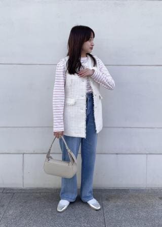 卒園式や入園式など特別な日のフォーマルスタイルはもちろん、通勤やお仕事、日常にも活用できる万能ジレ。頼れる一着として、季節を通して重宝する1着。