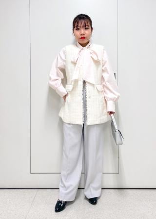 ・チェーンバッグを合わせてラグジュアリーな雰囲気に仕上げれば、オケージョンやフォーマルなシーンでもエレガントに。