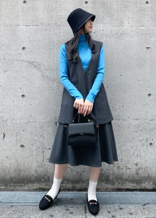 私の身長だとこのベストにパンツを合わせるとバランスが悪かったので購入を迷ったのですが、スカートと合わせたら可愛くて即決でした。