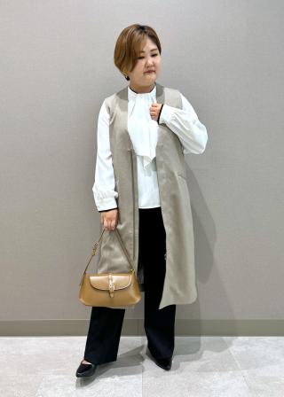 でも、このジレをひと目見て余分なものが排除されたデザイン&長め丈に惹かれ、おまけにセール価格になっていたので購入!試着せずに買ったので心配でしたが、スッキリ見えして気に入りました。