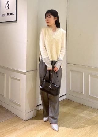 ・毛足のあるシャギー素材を使ったニットベスト。