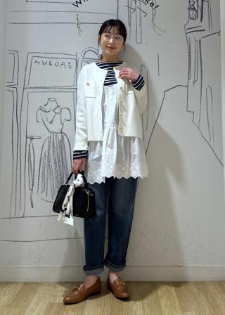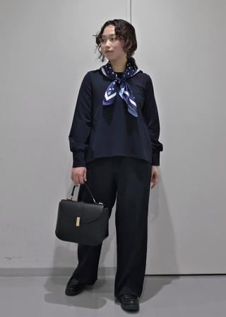 ・シンプルなニットやブラウス、Tシャツの首元にコンパクトに結ぶだけで、一気に顔周りが明るく華やかな印象に。