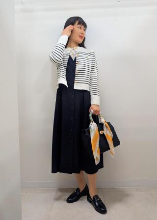 ・控えめながらも存在感のあるフチカラーが、コーディネートに上質な華を添える一枚。