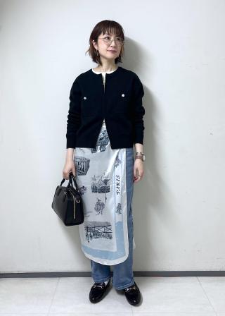 ・大きさも90cmと大判にリニューアルし、コーディネートの幅をより広げてくれる汎用性の高さが魅力。