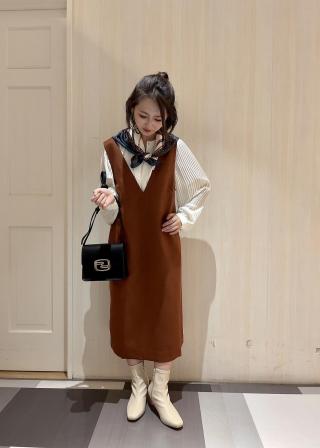 ・シンプルなニットやシャツの首もとに巻いてアクセントに。
