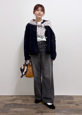 8月頃に柄違いを買ってヘビロテ。冬のバッグのアレンジ用に買い足しました。パンツの上から巻いてアクセントにも使えます。