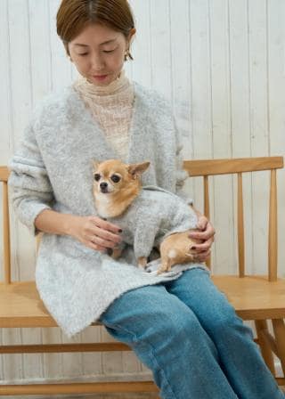 ・ふわふわな質感がキュートな、ドッグ用のブークレーニットカーディガン。