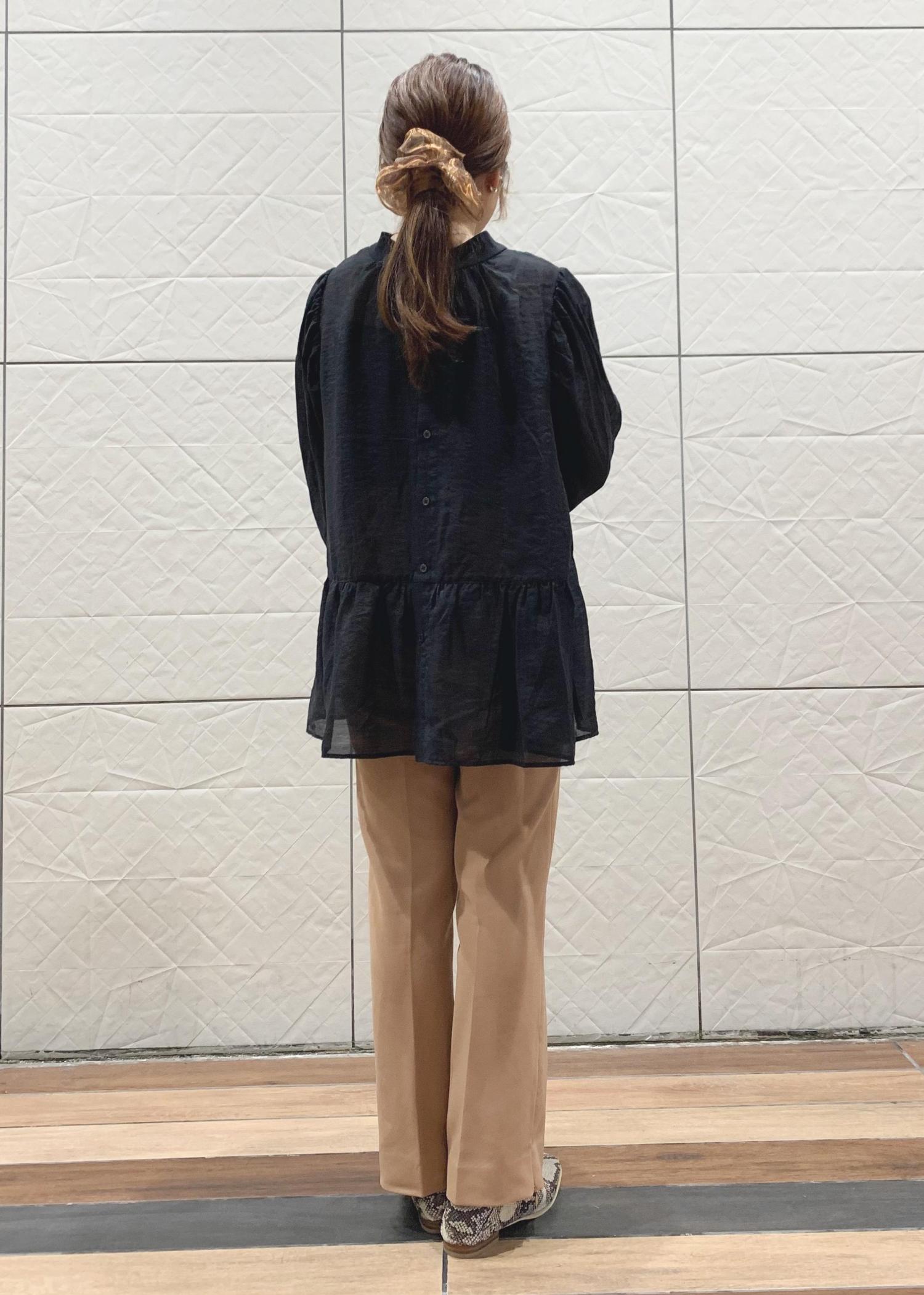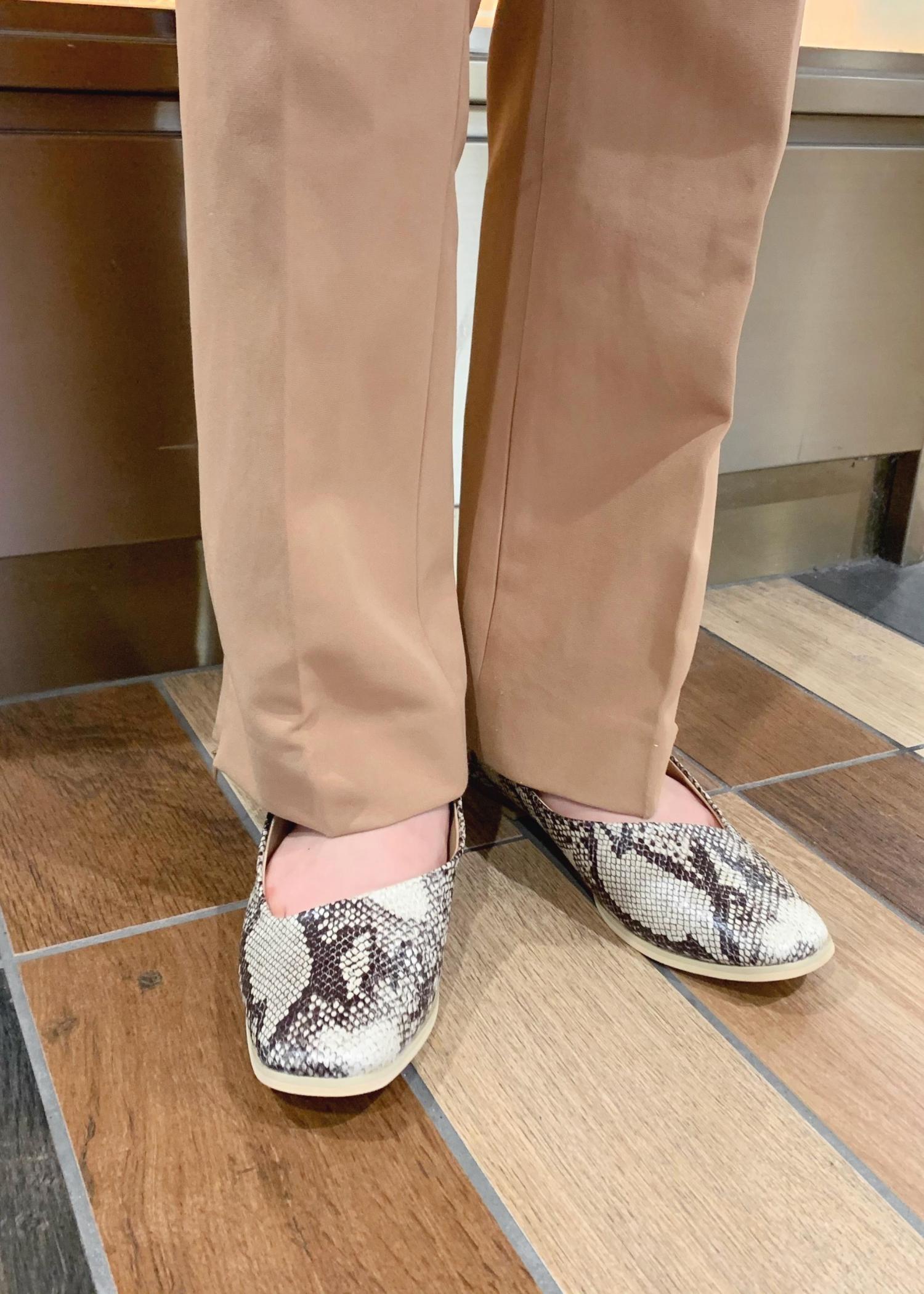 ブラック×キャメルで秋を意識しました。コーディネートのアクセントになる様、パイソン柄のシューズを合わせました。