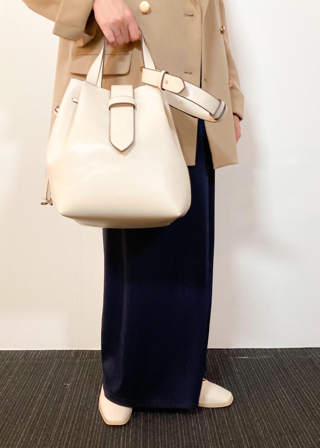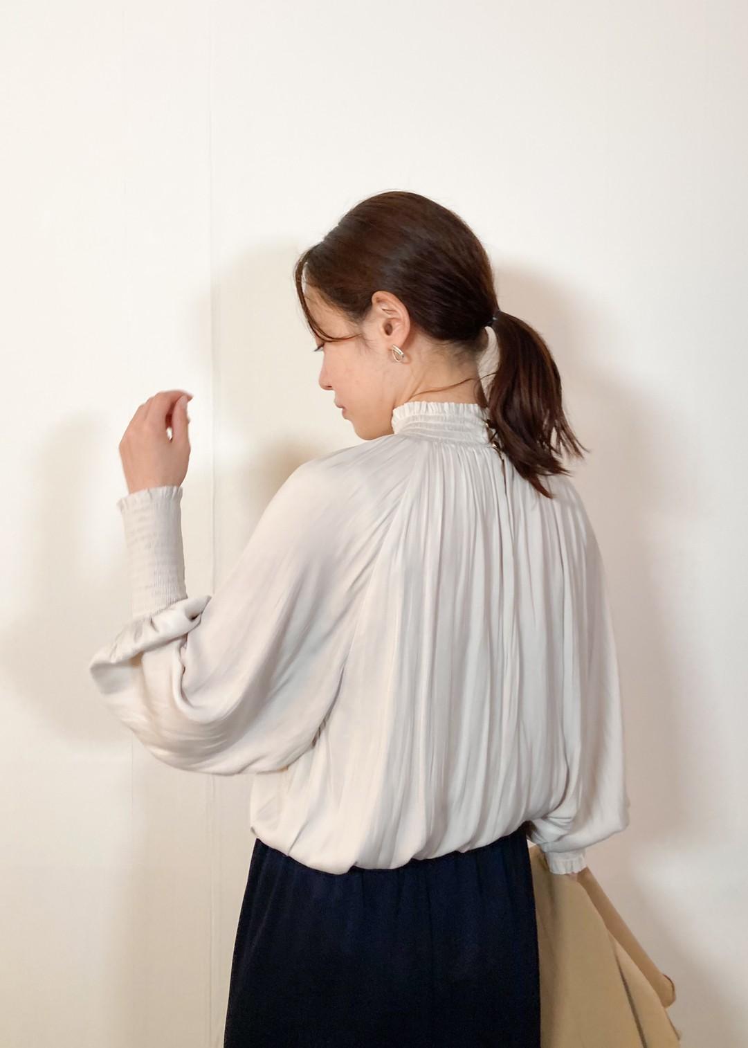 ブラウスは、ジャケットを着てもレイヤード感がでるようハイネックに。