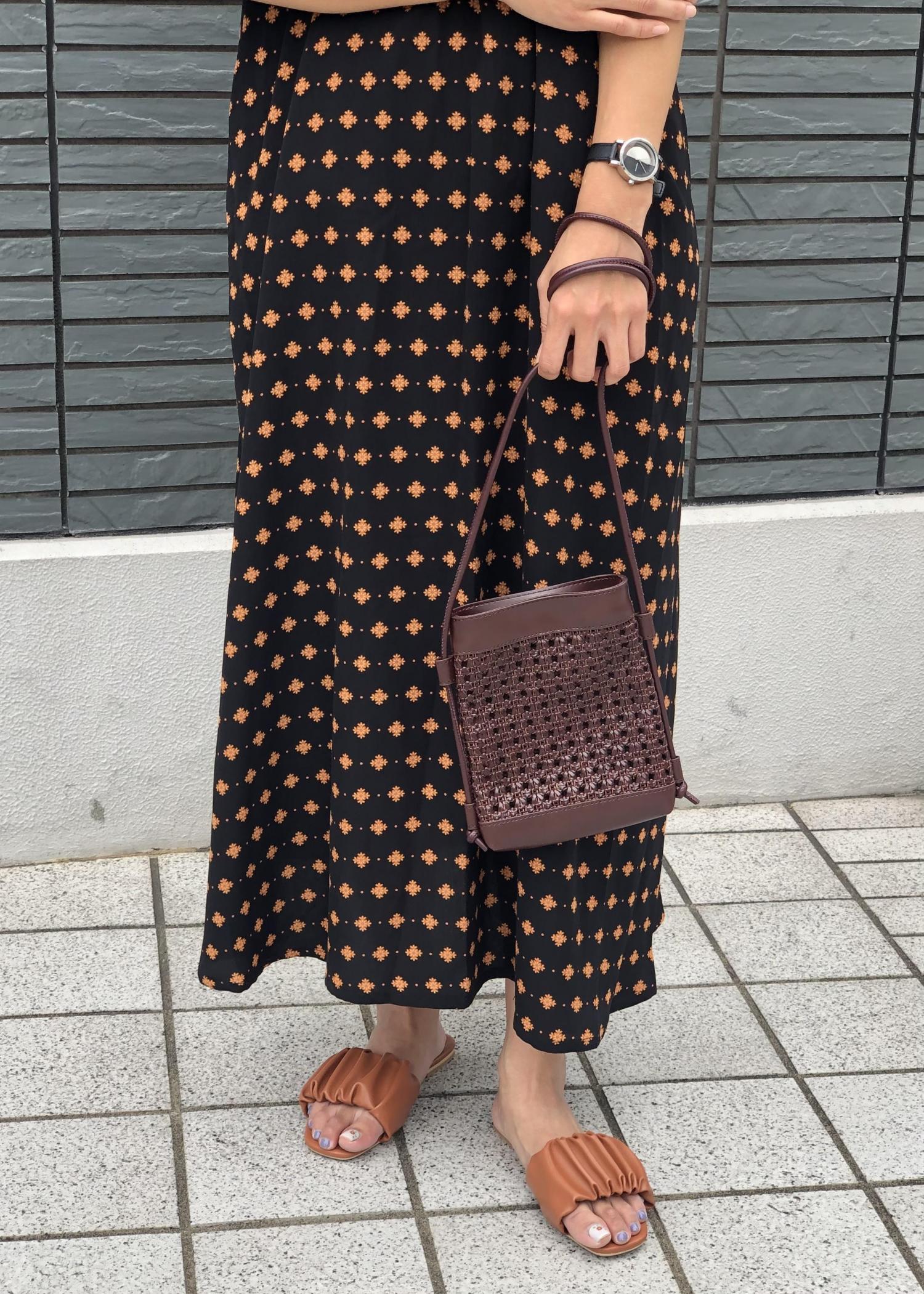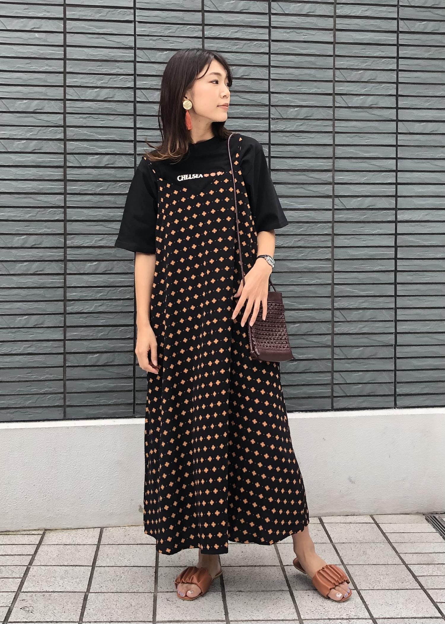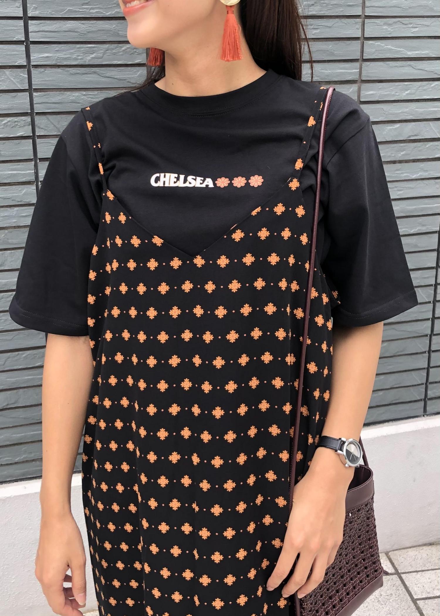 ぱっと見はブラック×キャメルの大人な印象のコーデですが、ロゴや柄がチェルシーデザインとなってるため、さりげない遊び心のあるコーディネートが楽しめます♪