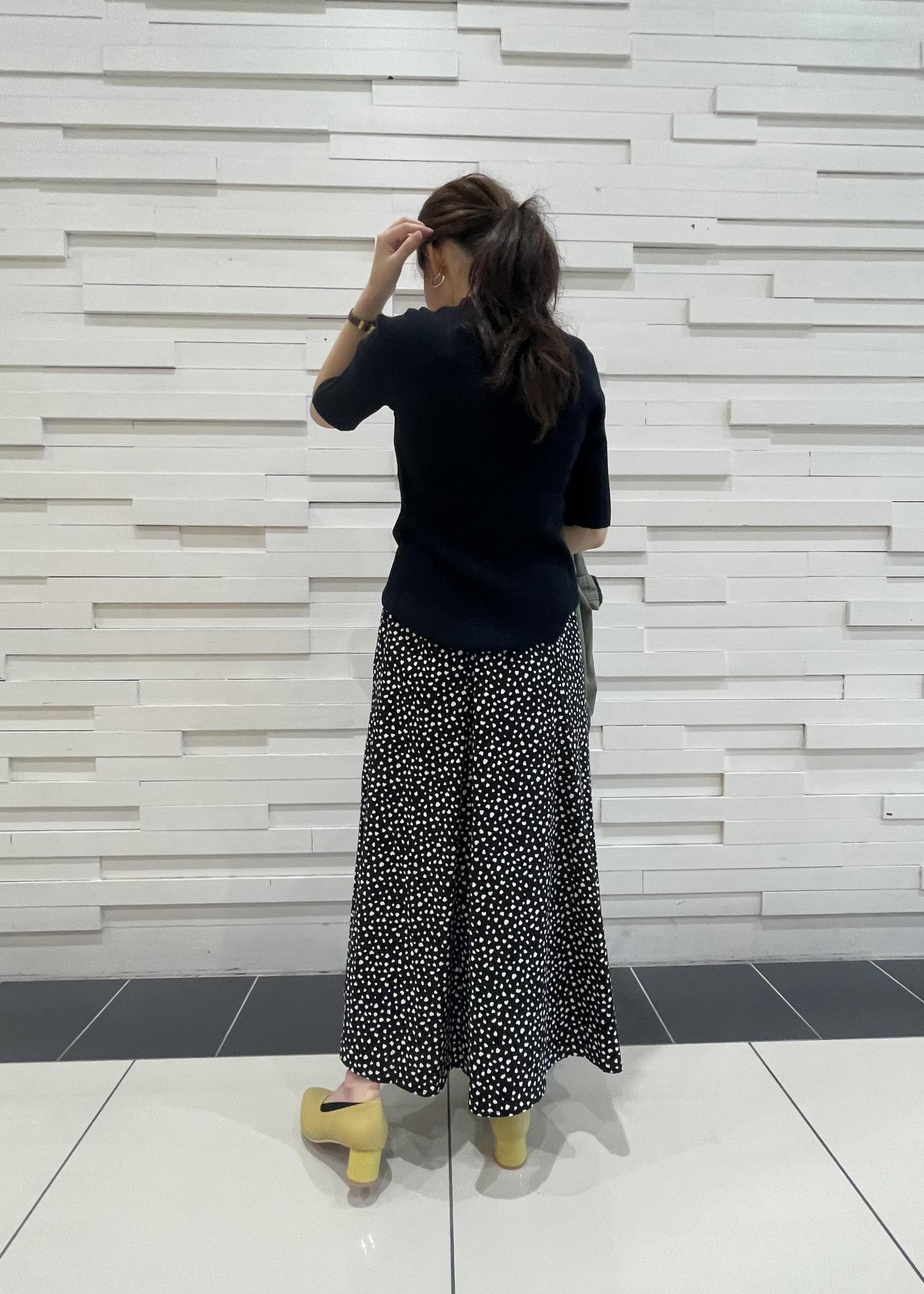 パンプスは黄色をチョイスしてポイントに。