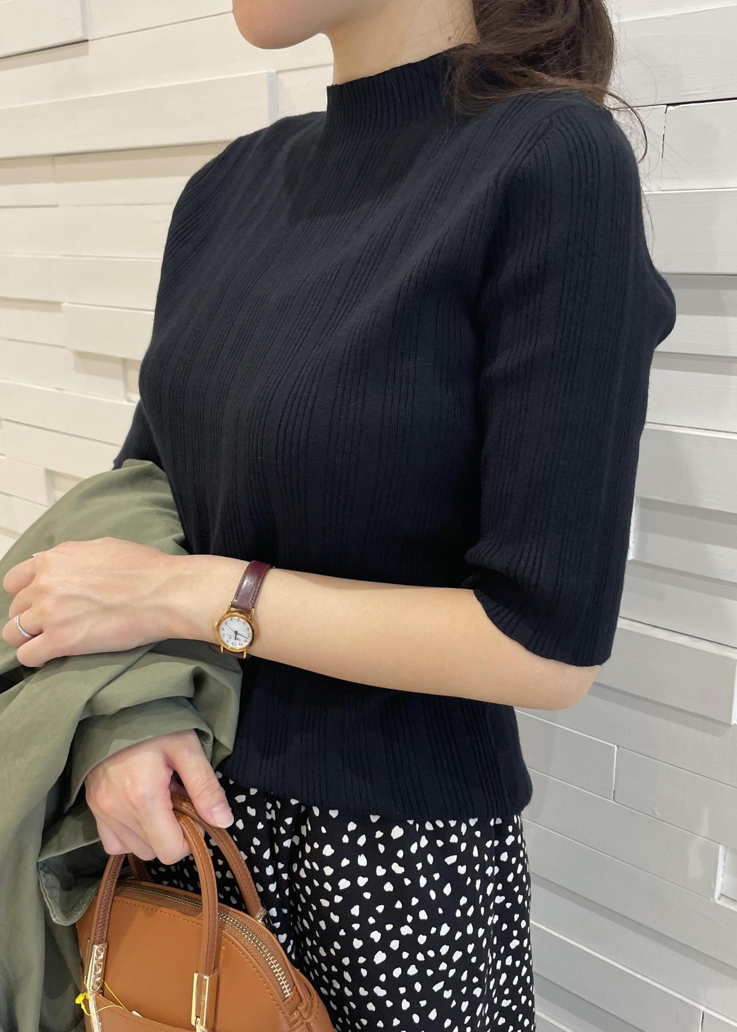 羽織はカーキ、インナーとスカートを黒でまとめてスッキリ見えるようにしました!
