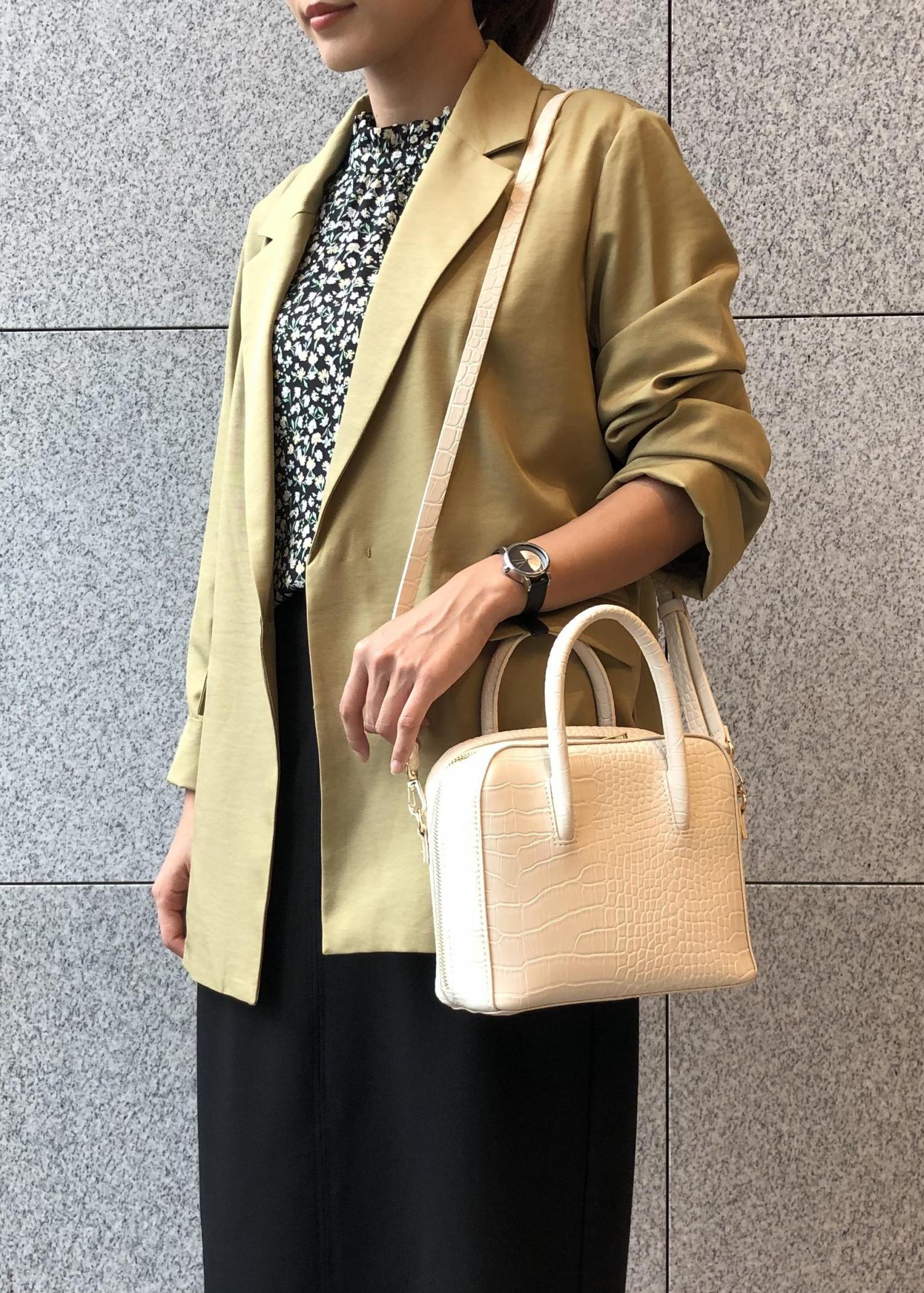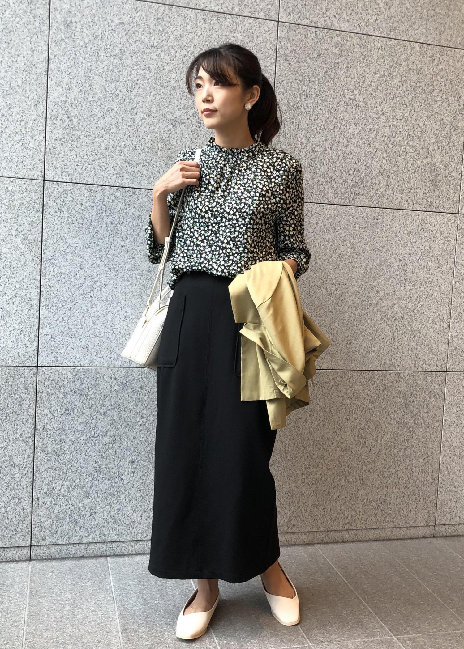 ブラウス×タイトスカートできちんと感を出しながらも、ジャケットで差し色を入れる事で堅くなりすぎないジャケットコーデにしました。