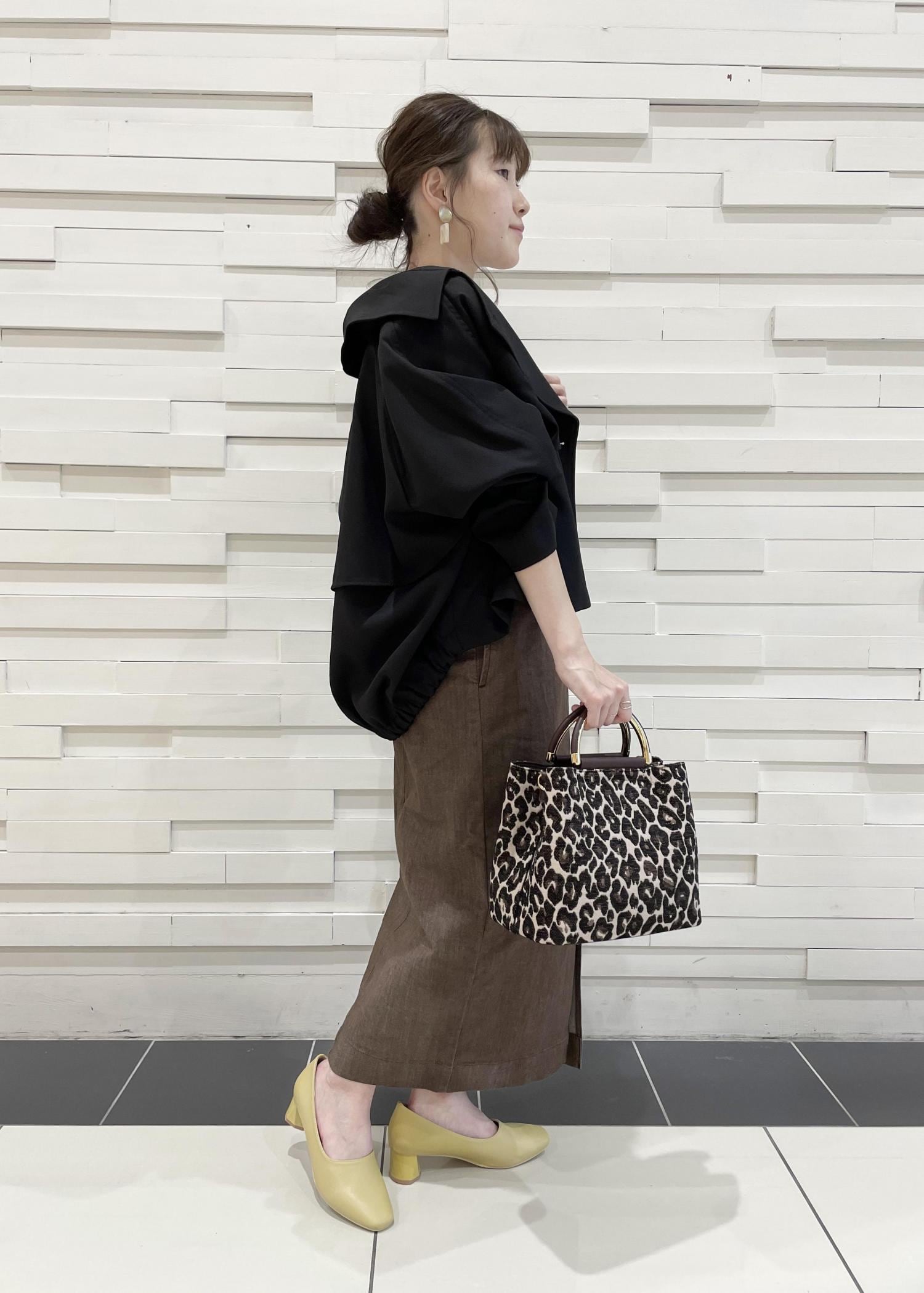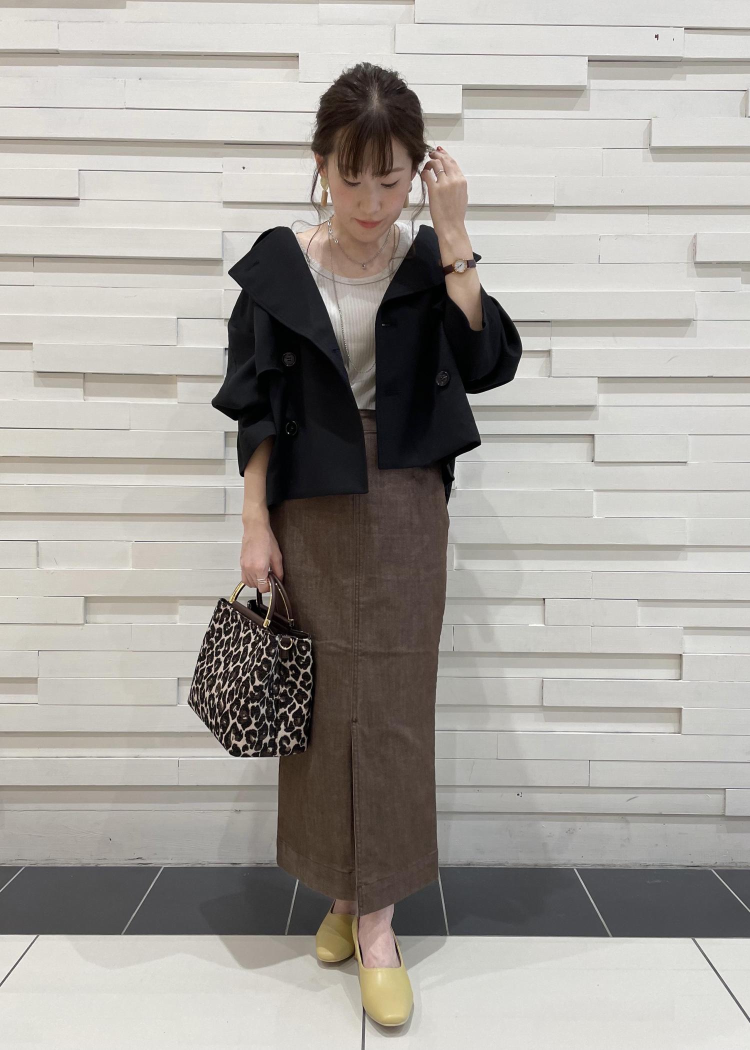 今回はすっきりめのタイトスカートと合わせて大人カジュアルスタイルに仕上げました。