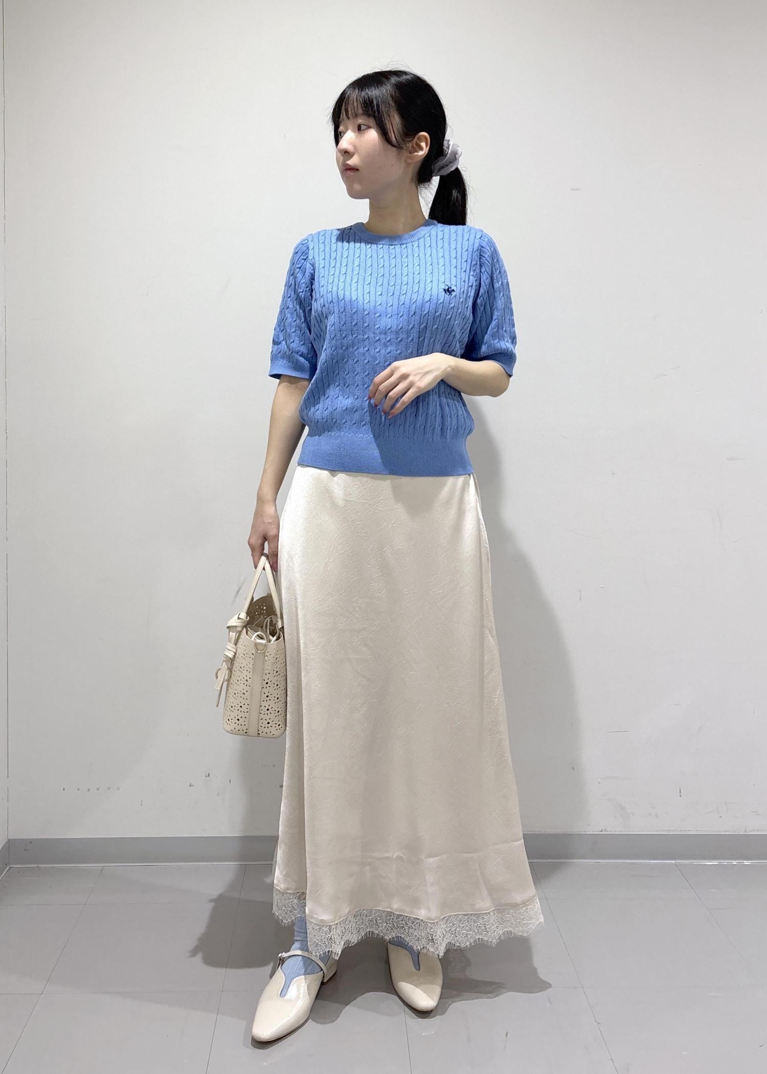 艶感のあるワンピにレトロな幾何学柄のビスチェをレイヤードし、クラシックでもあり今年らしいコーディネートを意識しました。