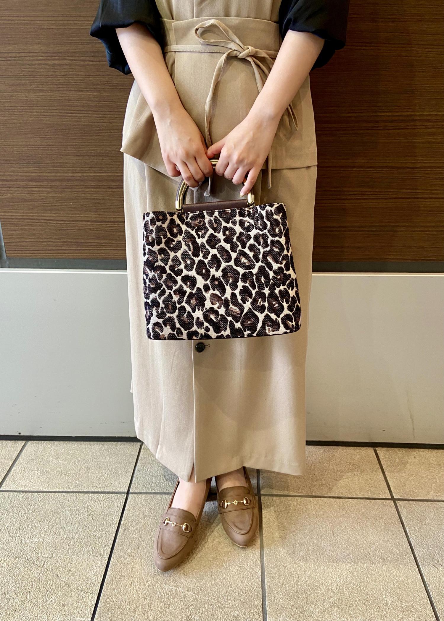 洋服がベーシックカラーなのでバックは秋らしいレオパード柄を入れてアクセントにしました。