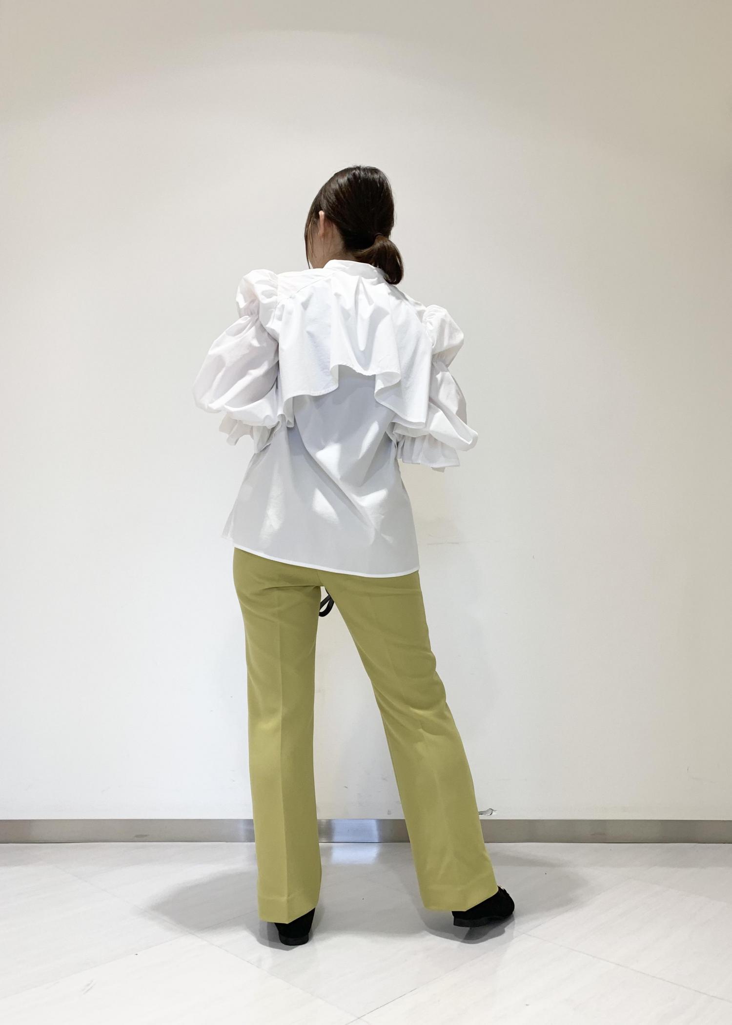 白ブラウスはフレッシュな印象になるので、細身のパンツ合わせでキレイめにまとめました。