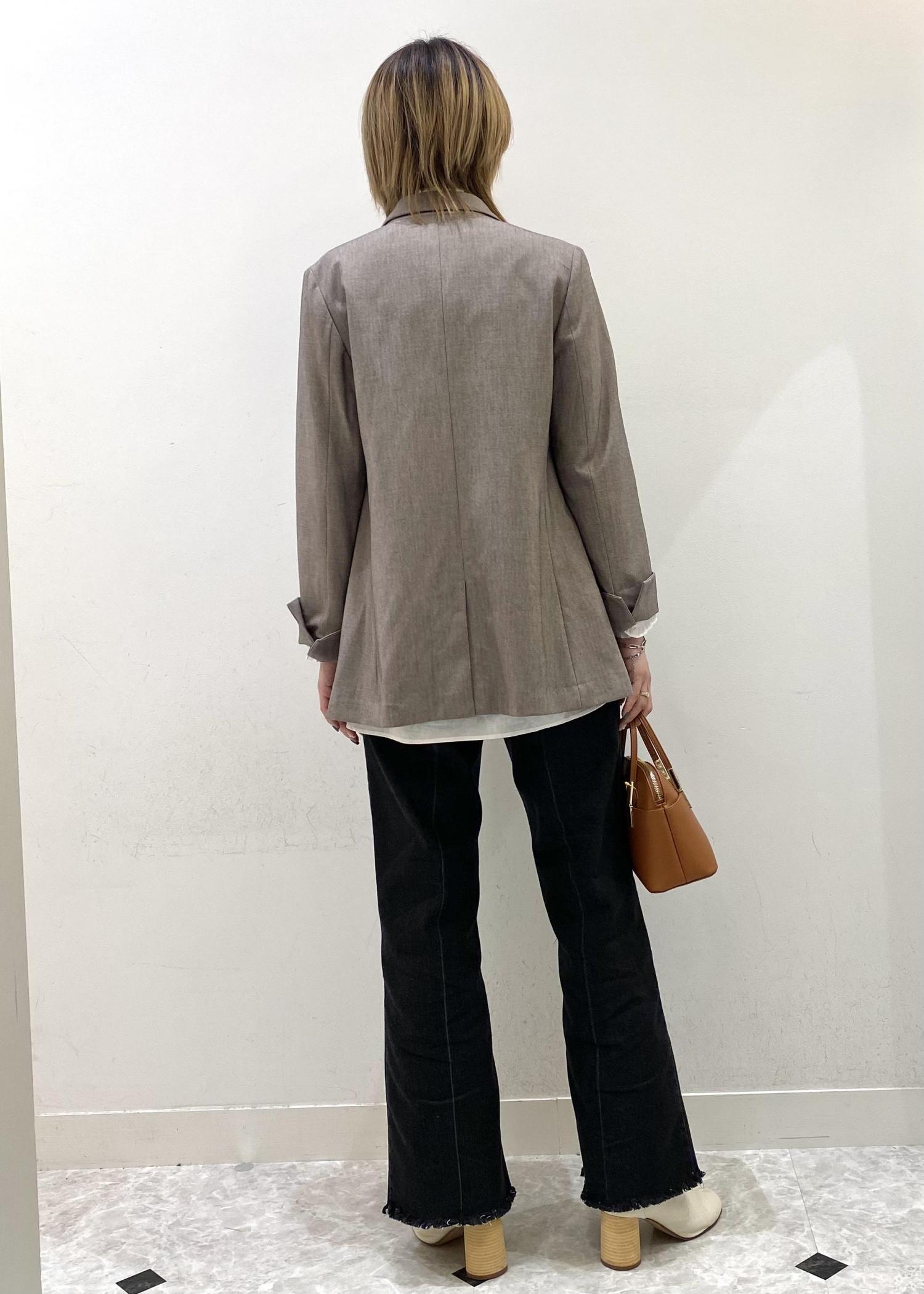 デニムにジャケットを合わせてカジュアルすぎないスタイリングにしてみました。中のシャツはあえてアウトスタイルに◎