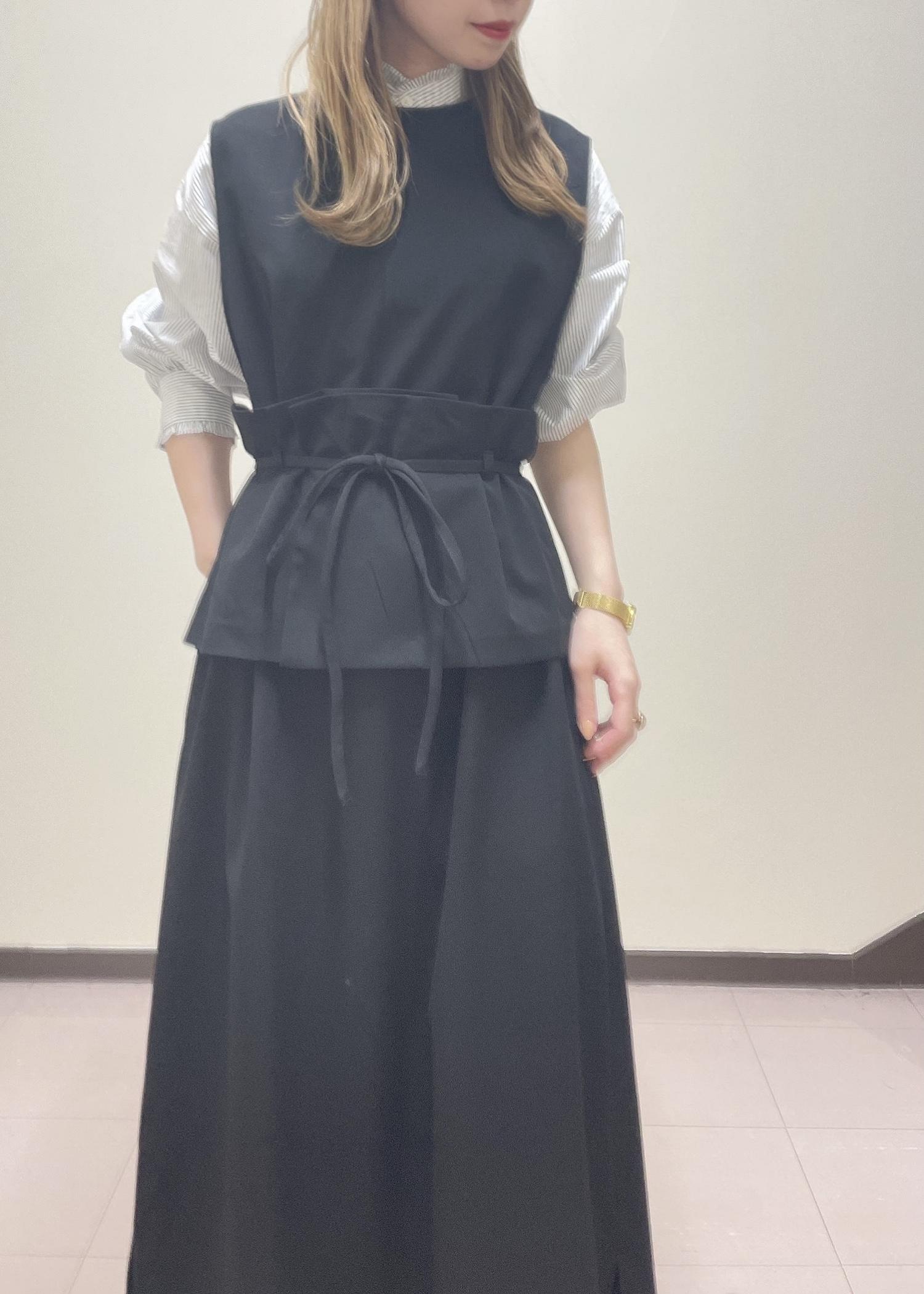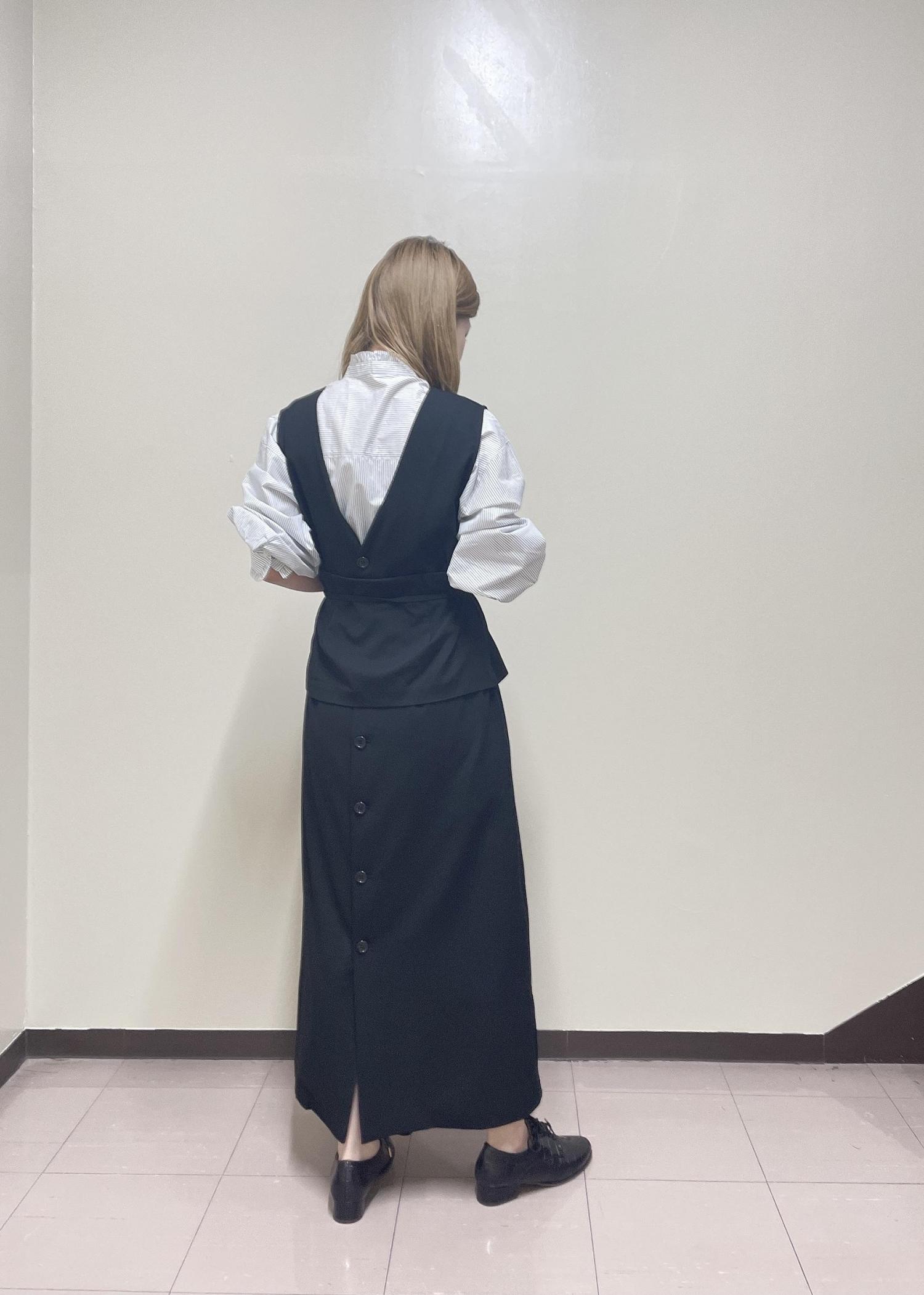 前後2WAYでジレにもなるので幅広いテイストのお洋服と組み合わせて着ていただけるので着回しが効きオススメです。