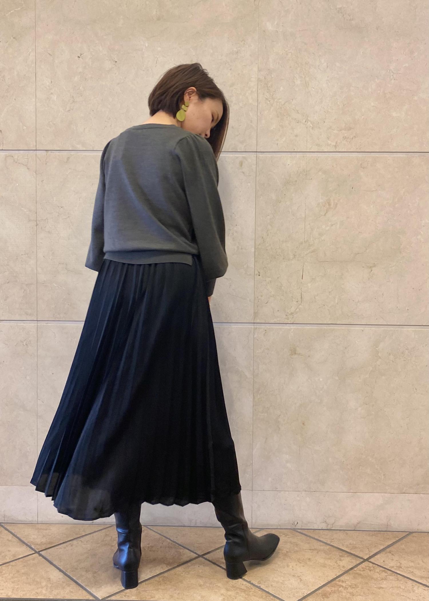 程よく光沢感もあるプリーツスカートときれいなシルエットのニットが女性らしい☺︎