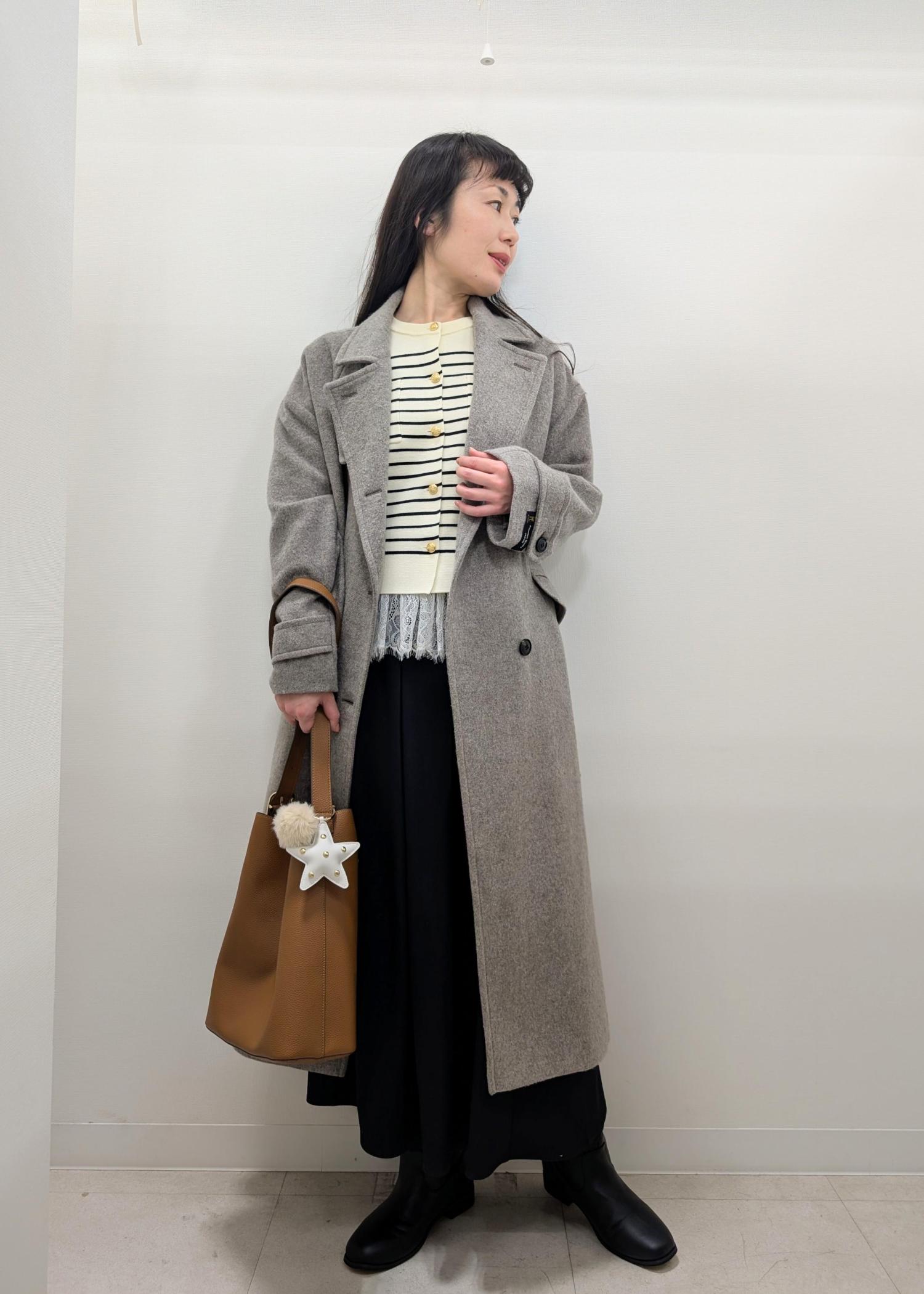トレンドのダブルジャケットを通勤用にコーディネートしました。