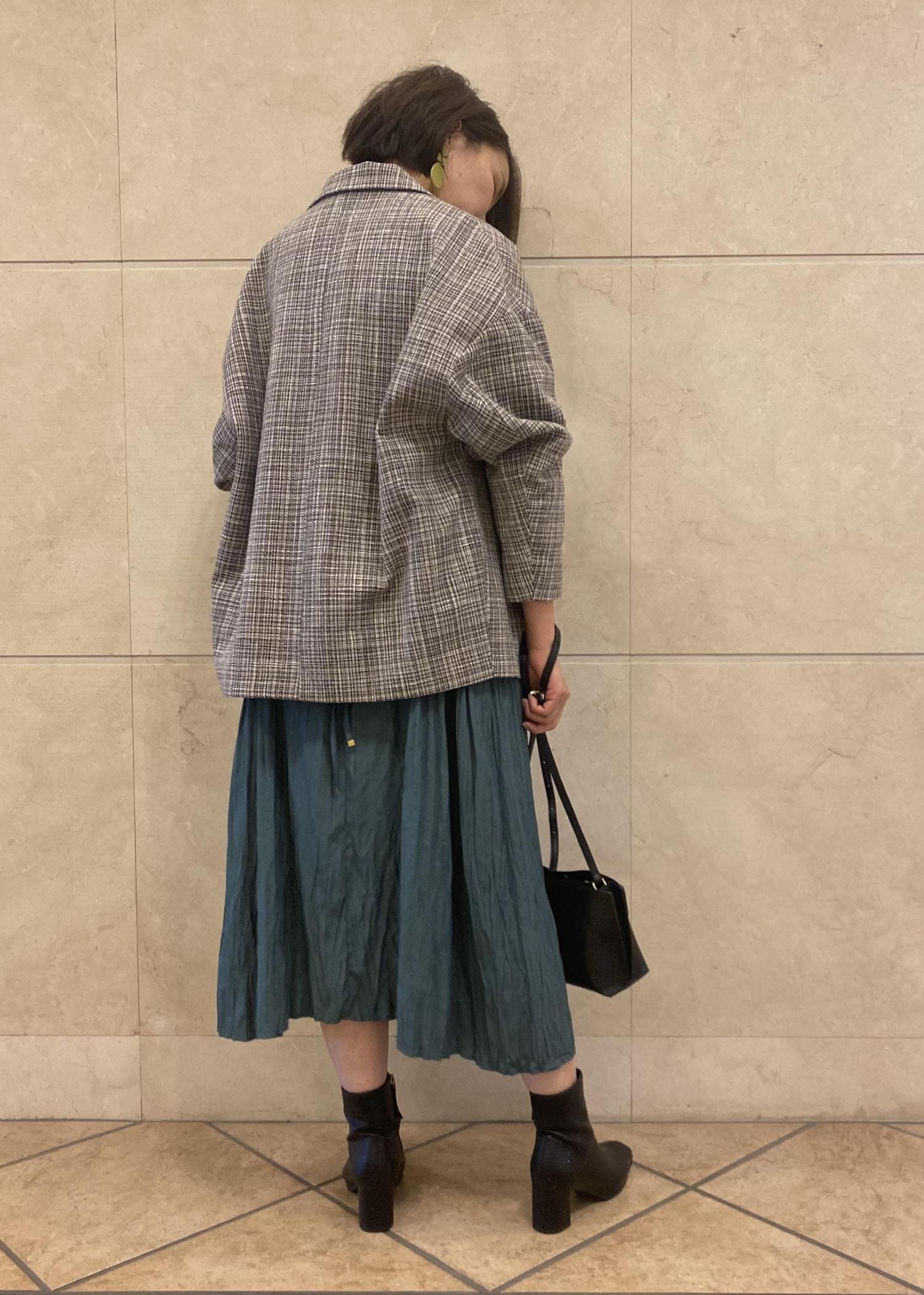 程よい光沢感が高見えするワンピースです。 落ち着いたグリーンとツイードジャケットのコーディネートで、お食事会などのシーンでも上品な印象に。 Instagram▷▷▷@vis_sapporoapia