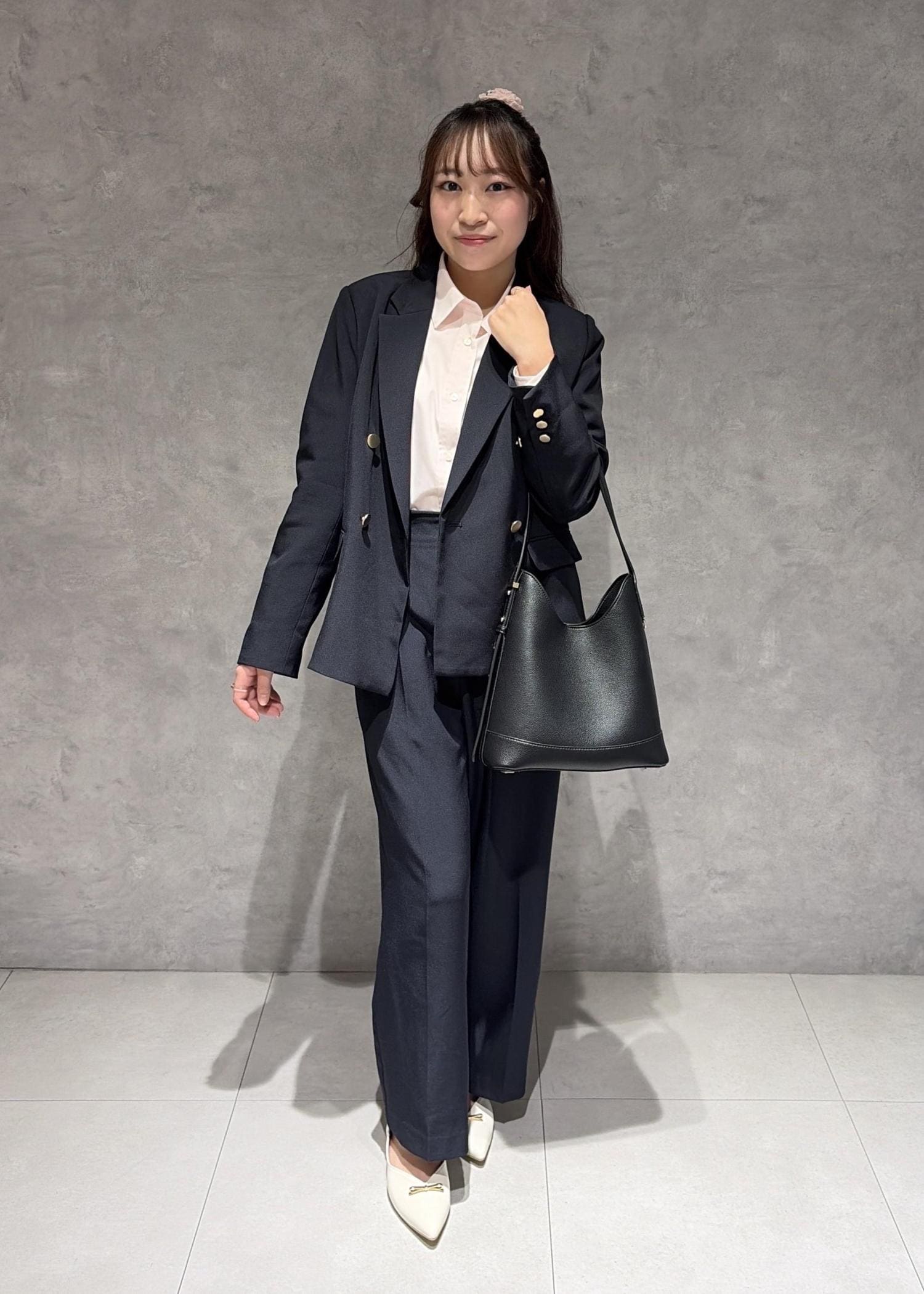 トップスはキレイめブラウスを合わせて上品なスタイリングもできます。