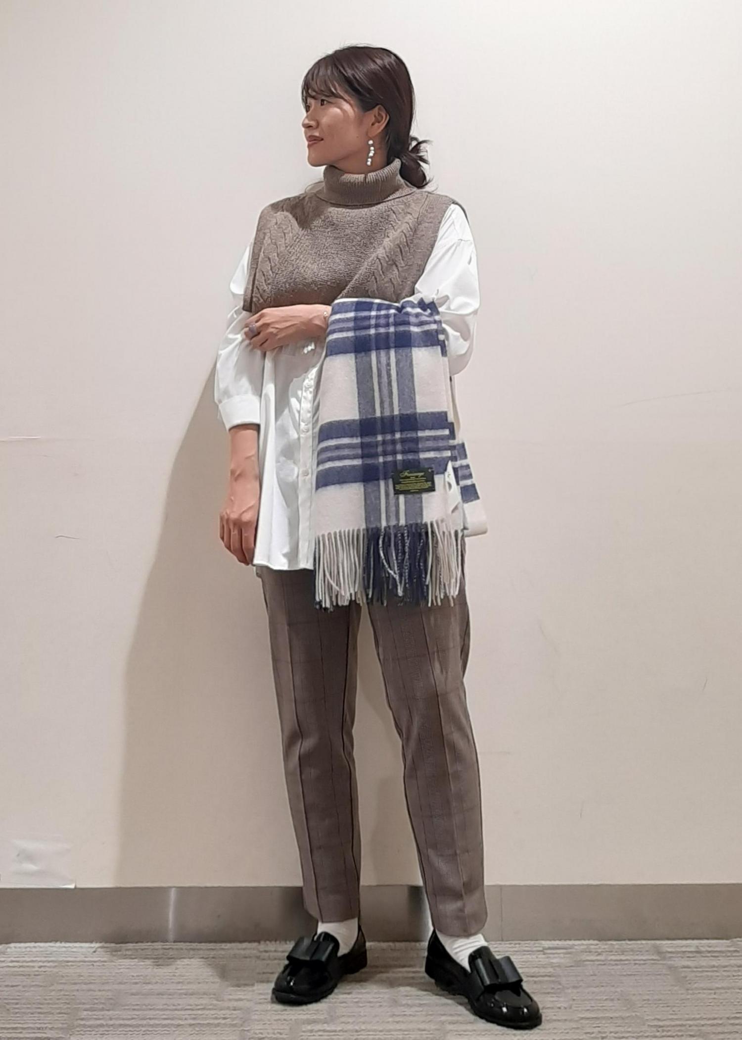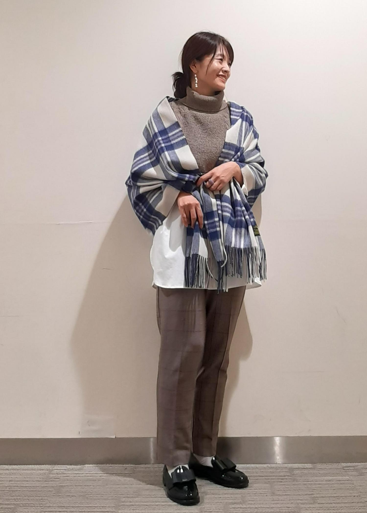 今年のチェック柄ストールは馴染みのいいカラーで大人コーデにもおすすめです♡