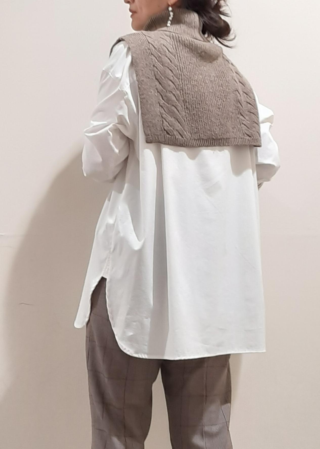 トレンド感のあるタートルニット×シャツのレイヤード。