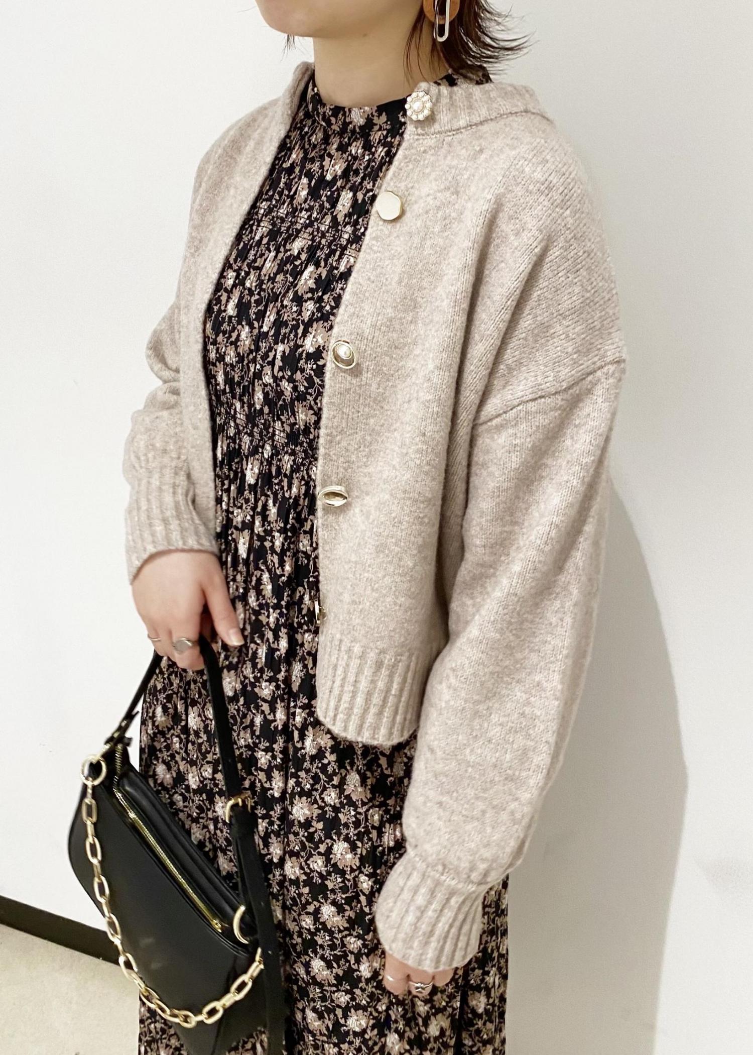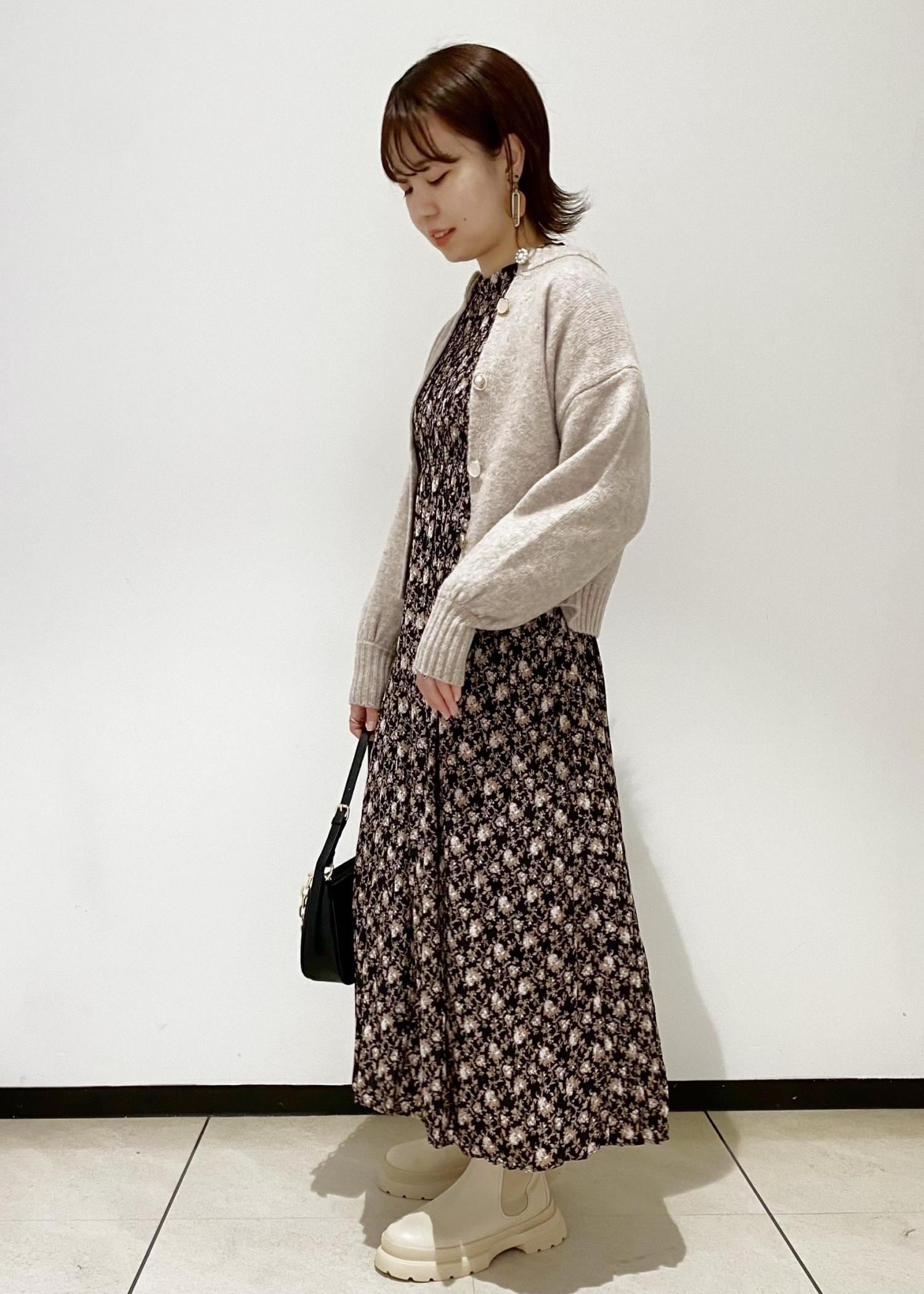 レディなデザインのカーデをプラスしたワンピスタイリングです。