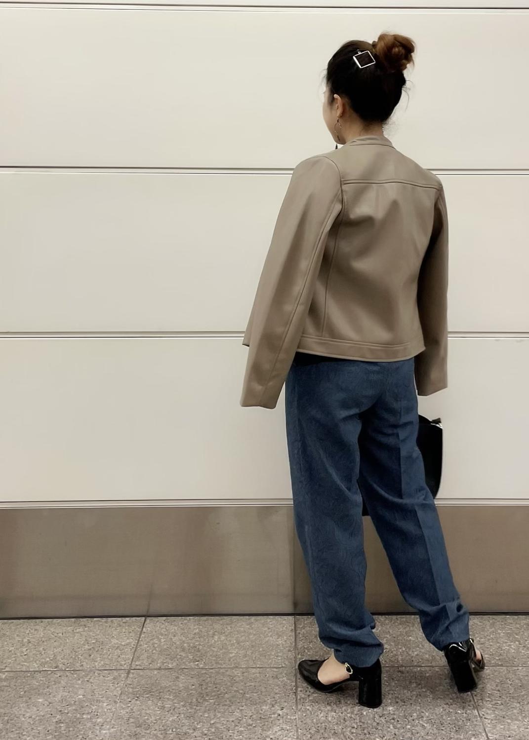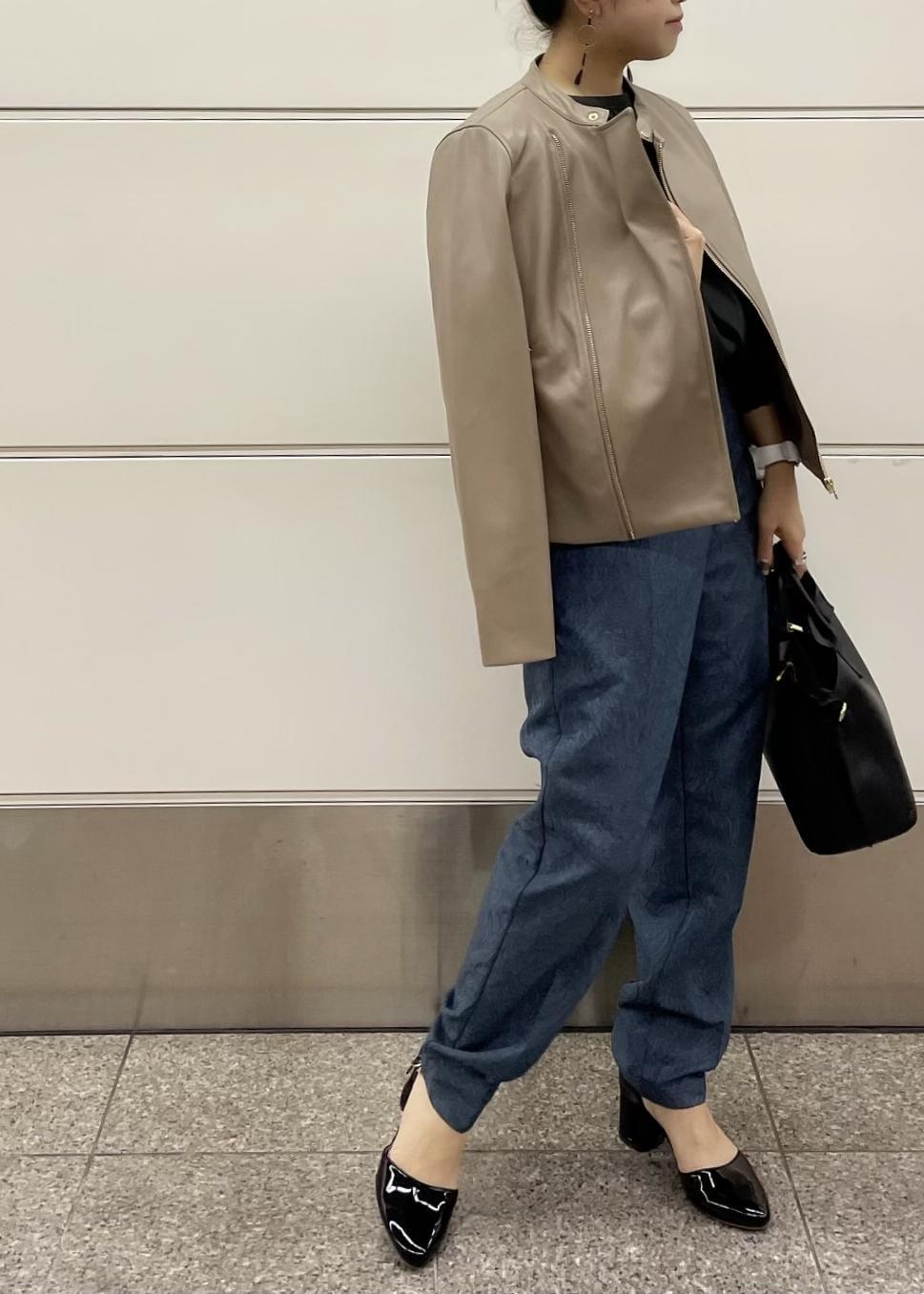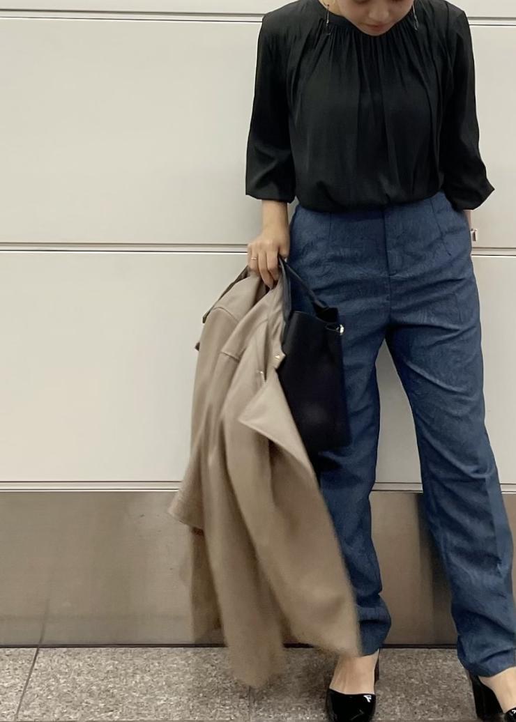 ジャガード柄のパンツを主役に大人の綺麗目お出掛けコーデにしました☺︎