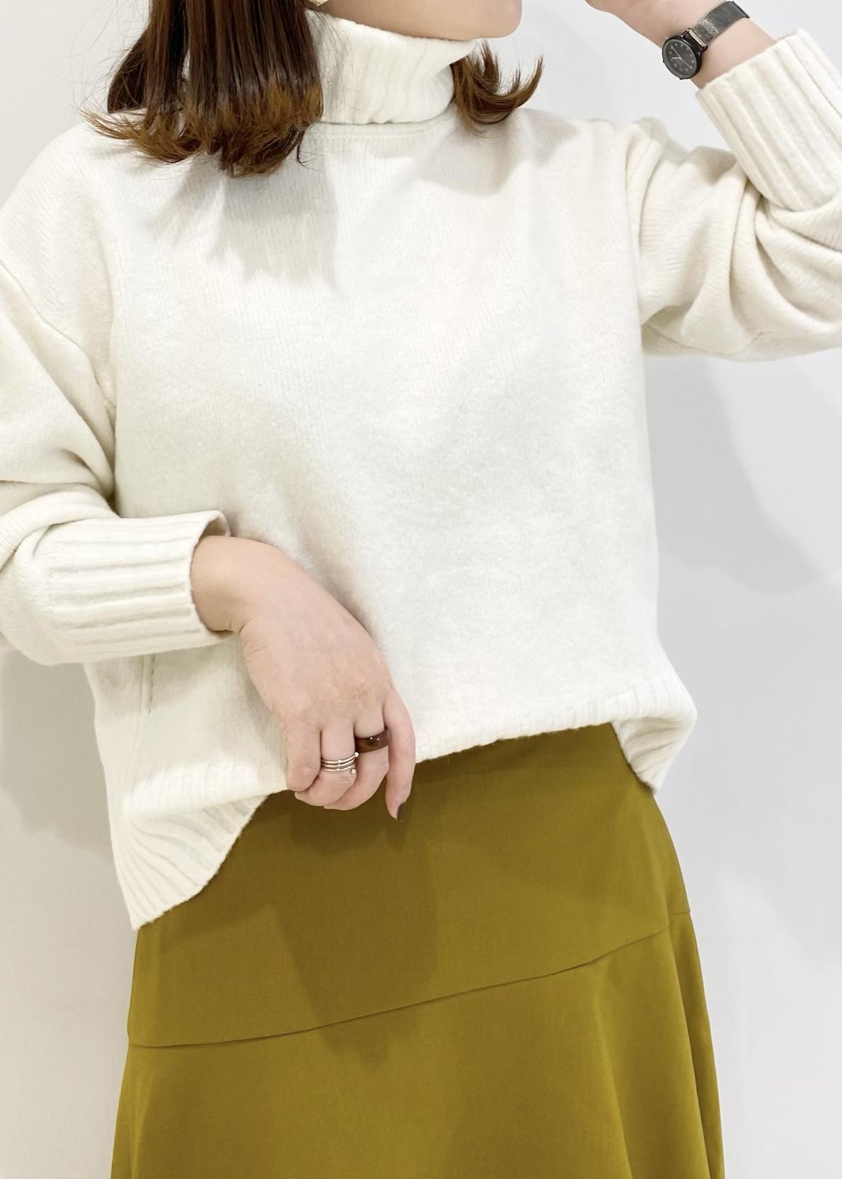 ショート丈のニットをセレクトすることで、腰まわりのラインが程よく見えスタイルアップ♪