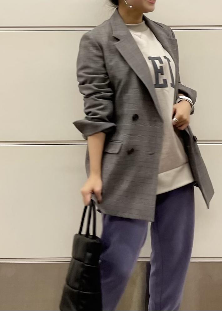 オーバーサイズのトップス、ジャケットにフィット感のあるパンツを合わせてリラックス感のある大人コーデにしてみました♪