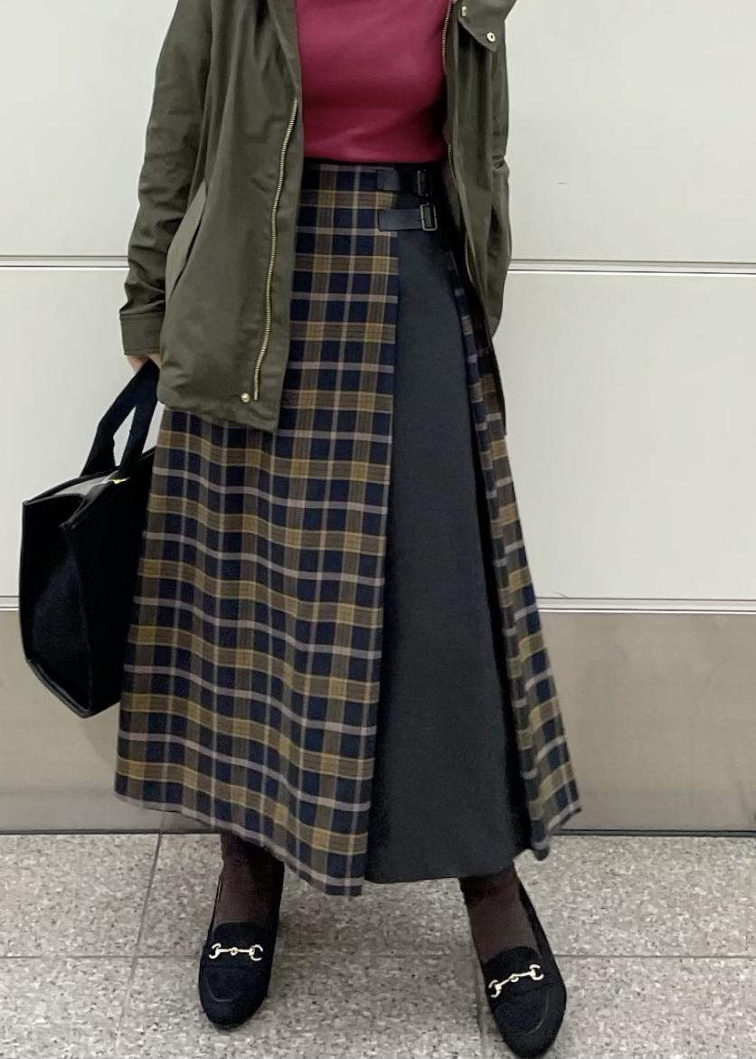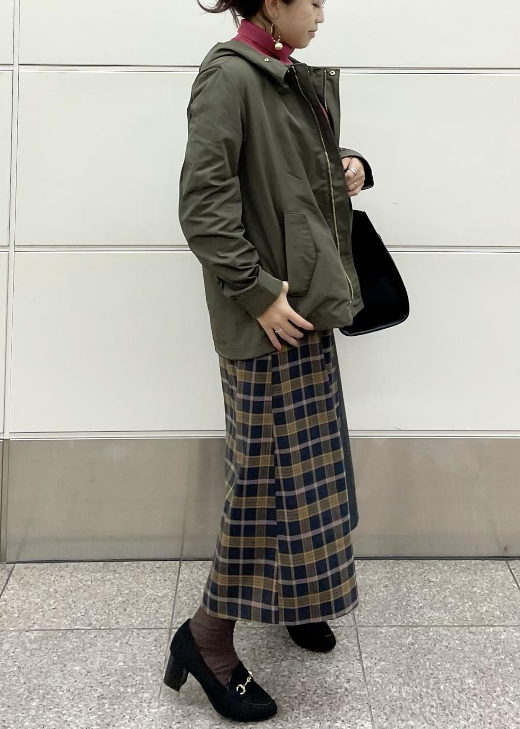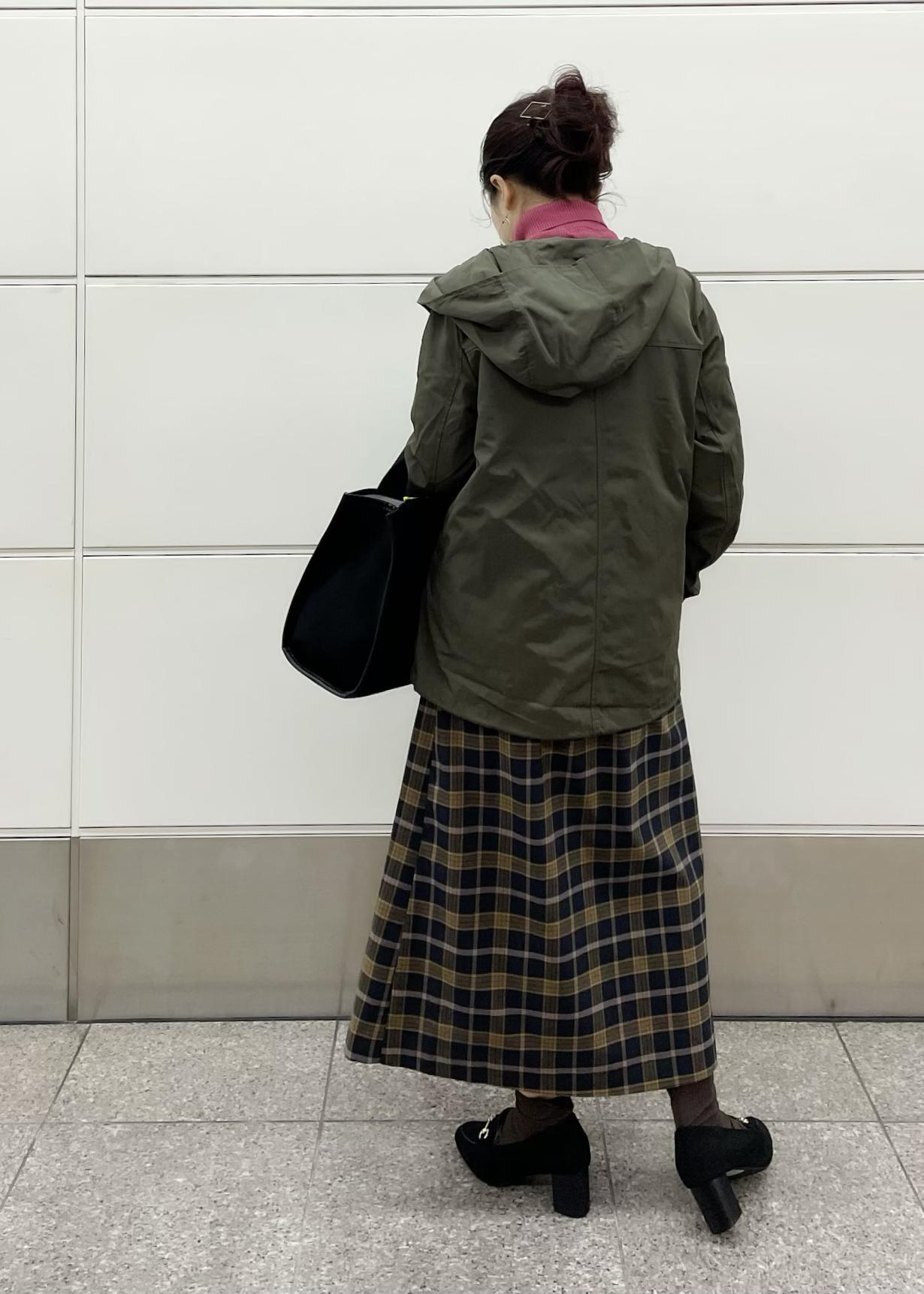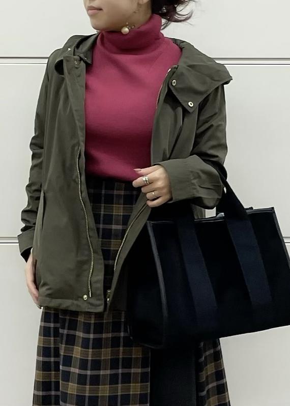ニットとアウターはカラー×カラーですが、カーキは万能なので色合わせに困らずご利用頂けます♪