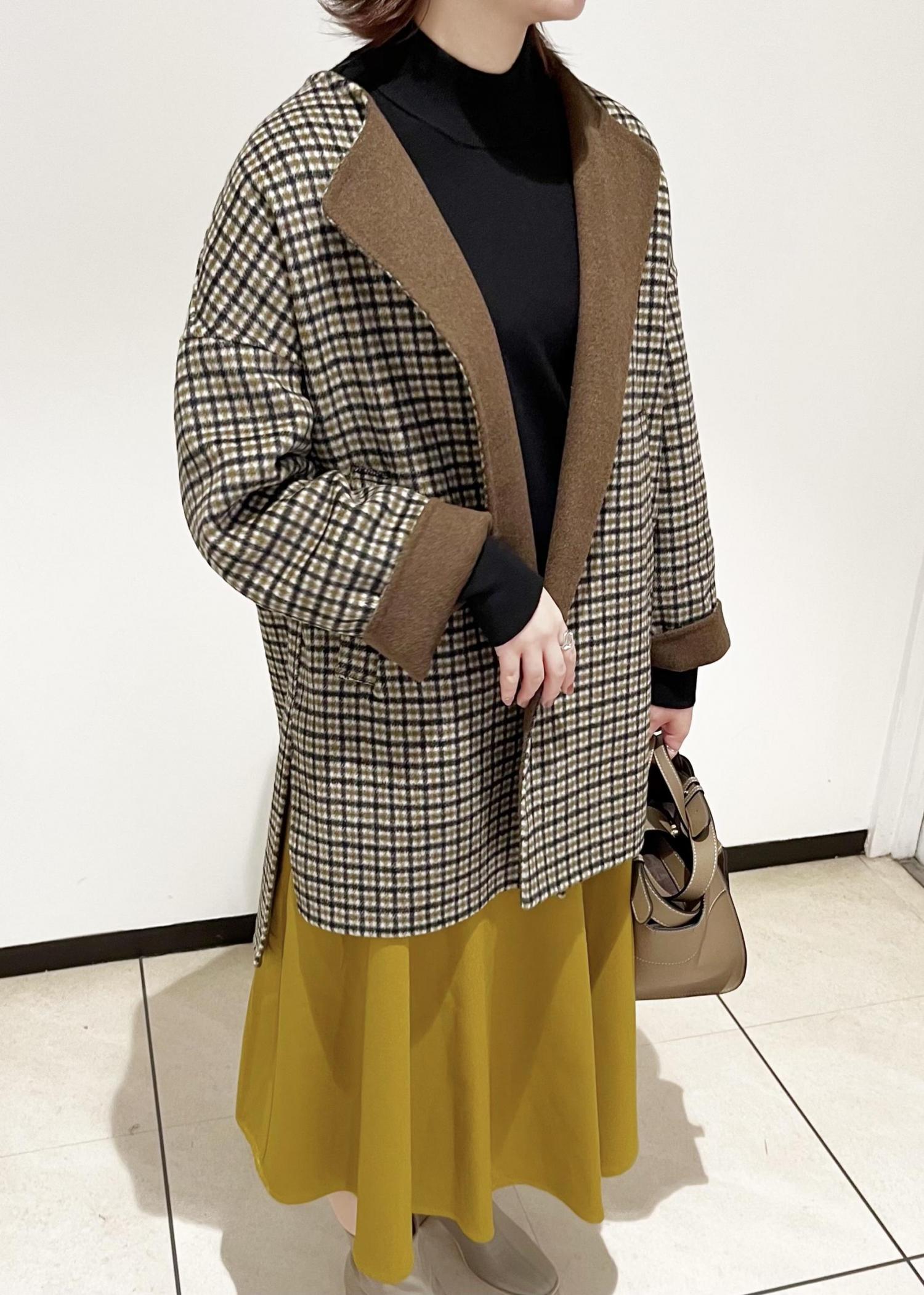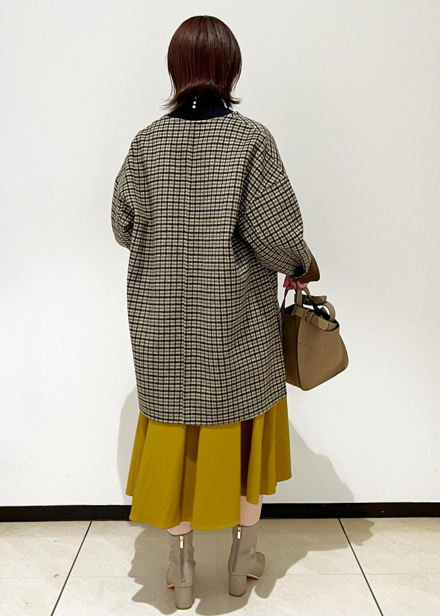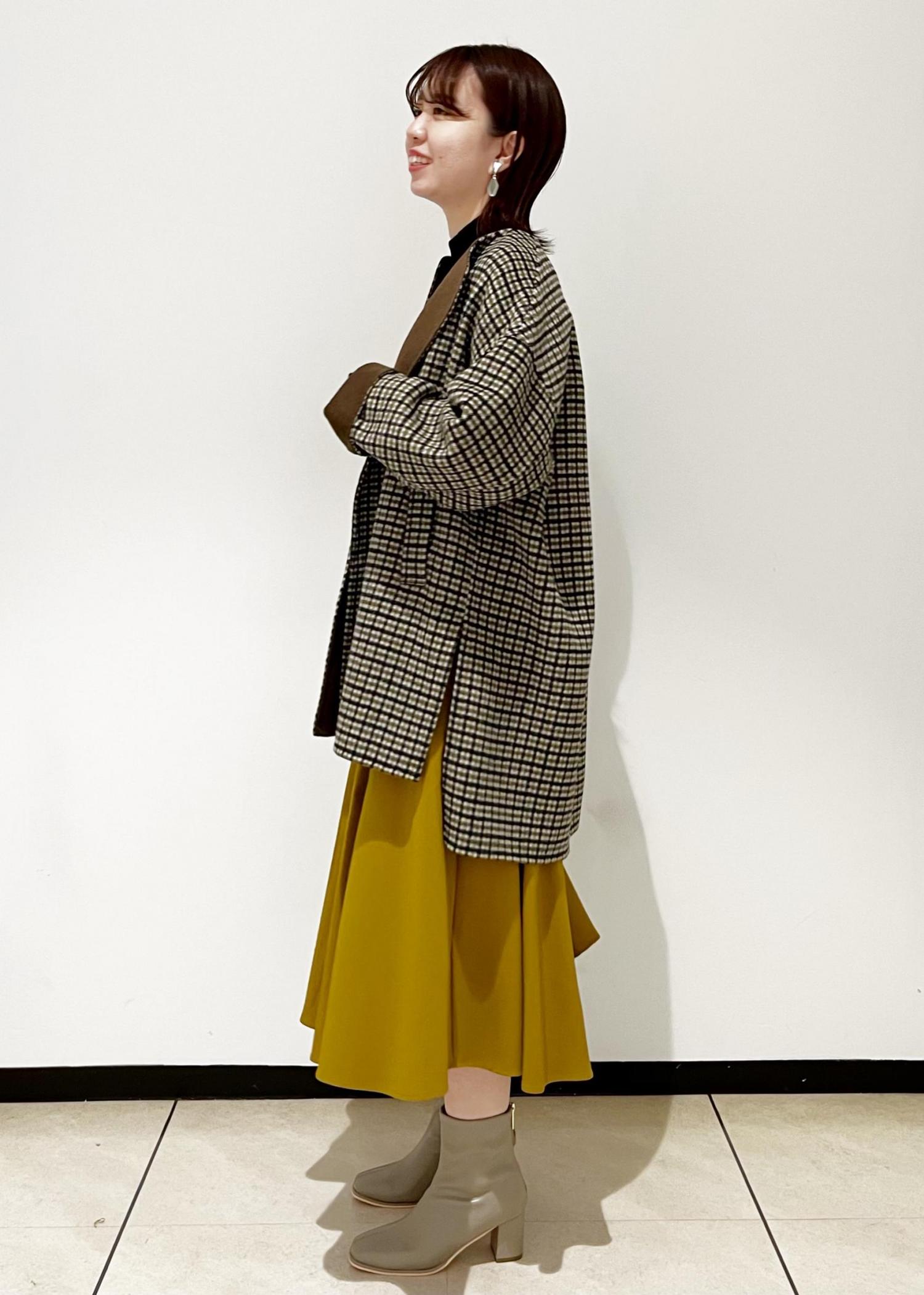 きれいめなアイテムにマスタードカラーやチェック柄など季節感のあるカラーを取り入れた、大人の方におすすめのコーディネートです。