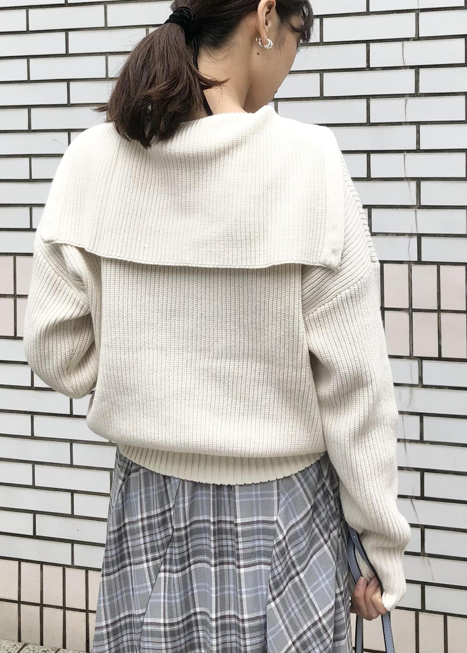 ふんわり可愛いシルエットのスカートなのでショート丈のニットを合わせました。
