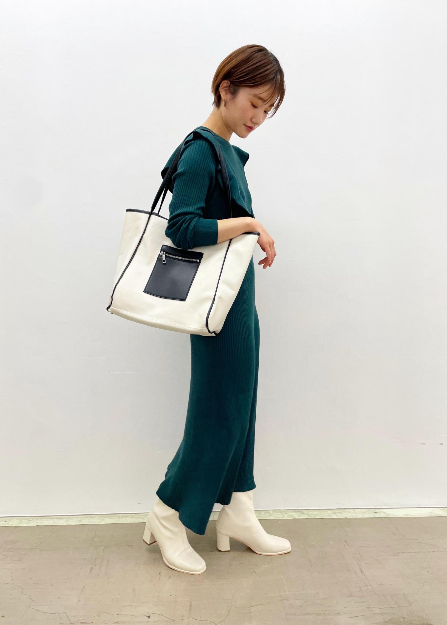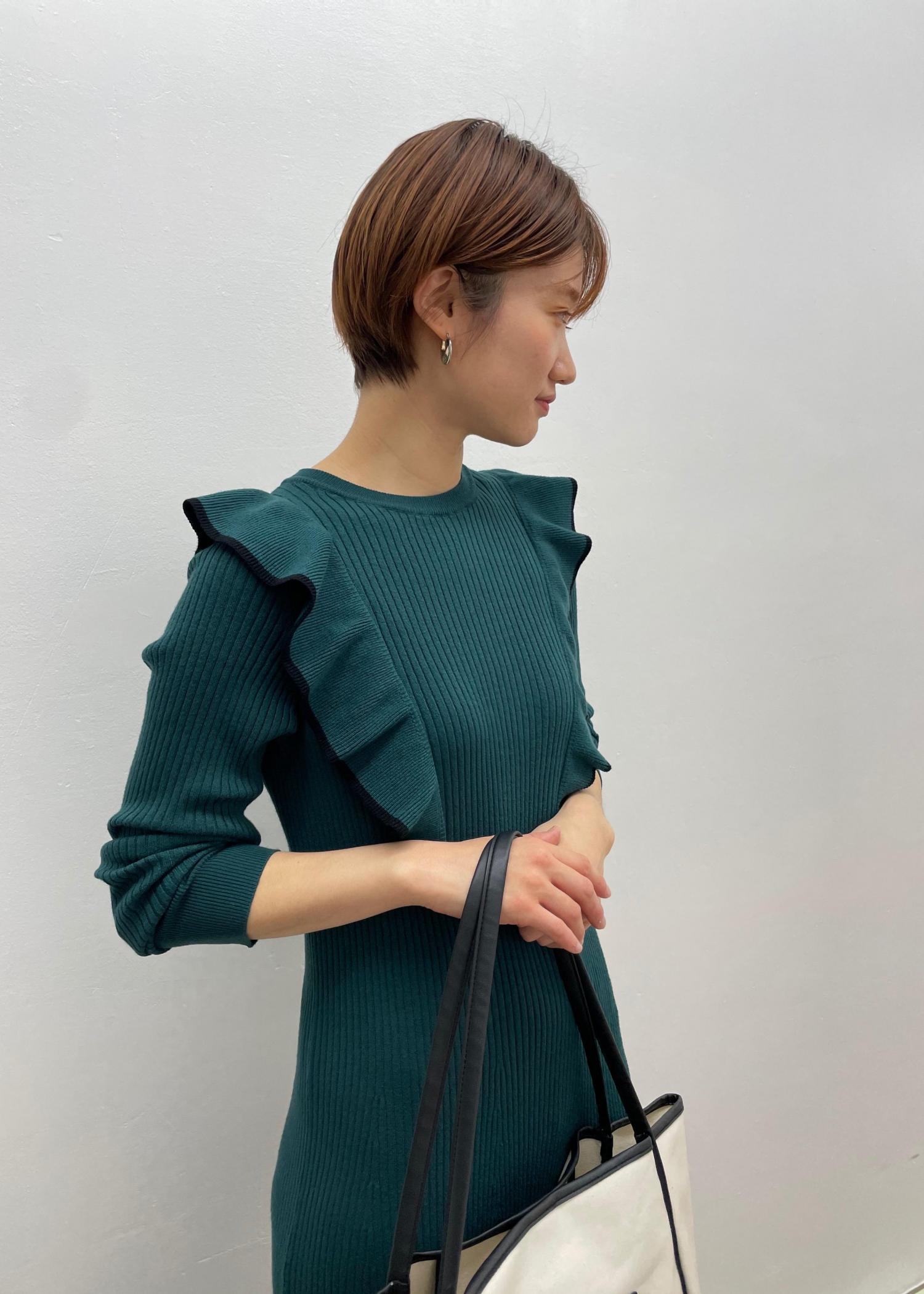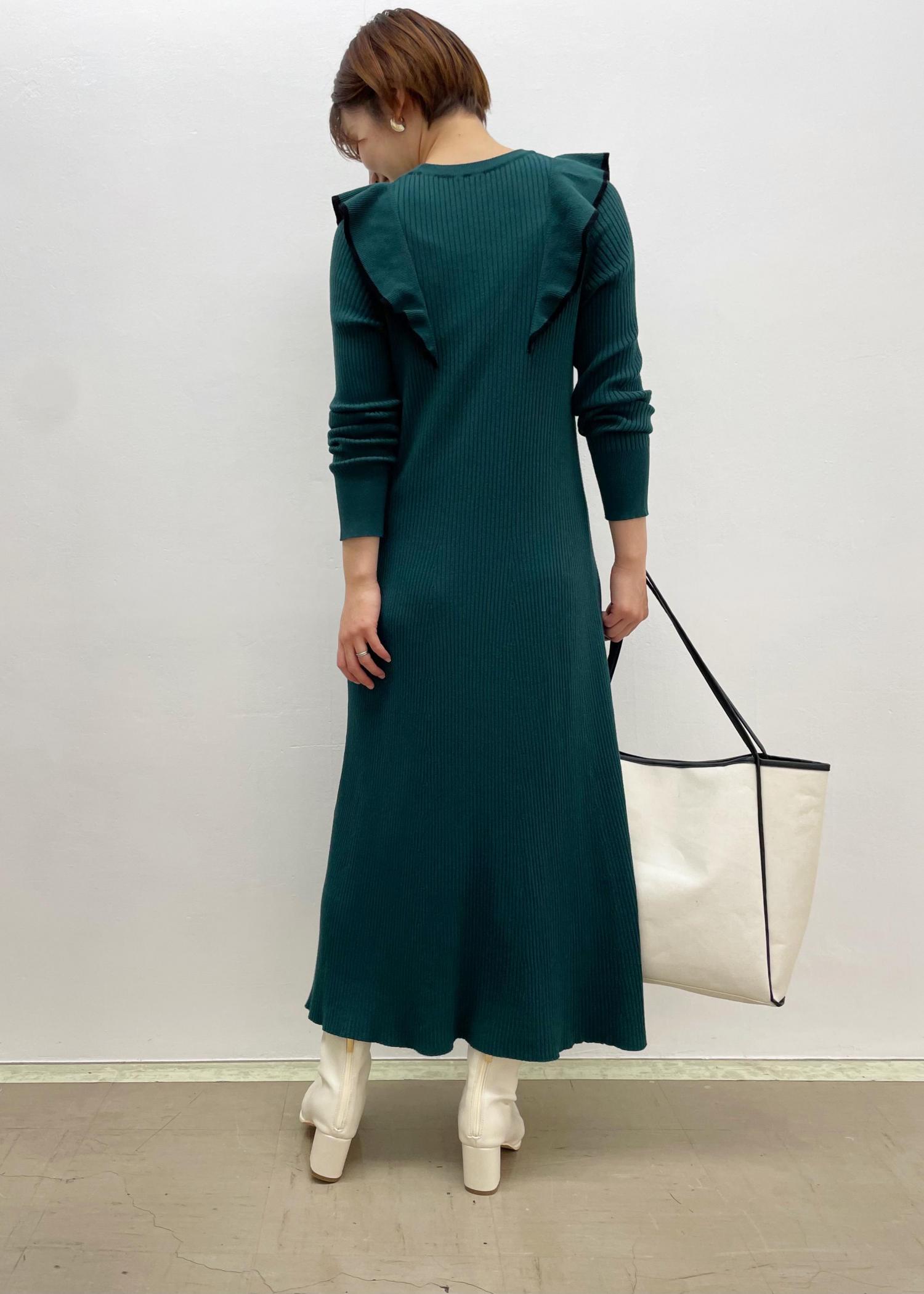 フリルが可愛い美シルエットなニットワンピを使ったコーディネート♩ 深みのあるグリーンのワンピには シンプルにホワイトのショートブーツを合わせ バックの色味もホワイトでリンクさせました。 グリーンはフリルの甘さを抑えられるので おすすめです。 インスタグラムの方も 是非ご覧ください♩ @vis_opafujisawa