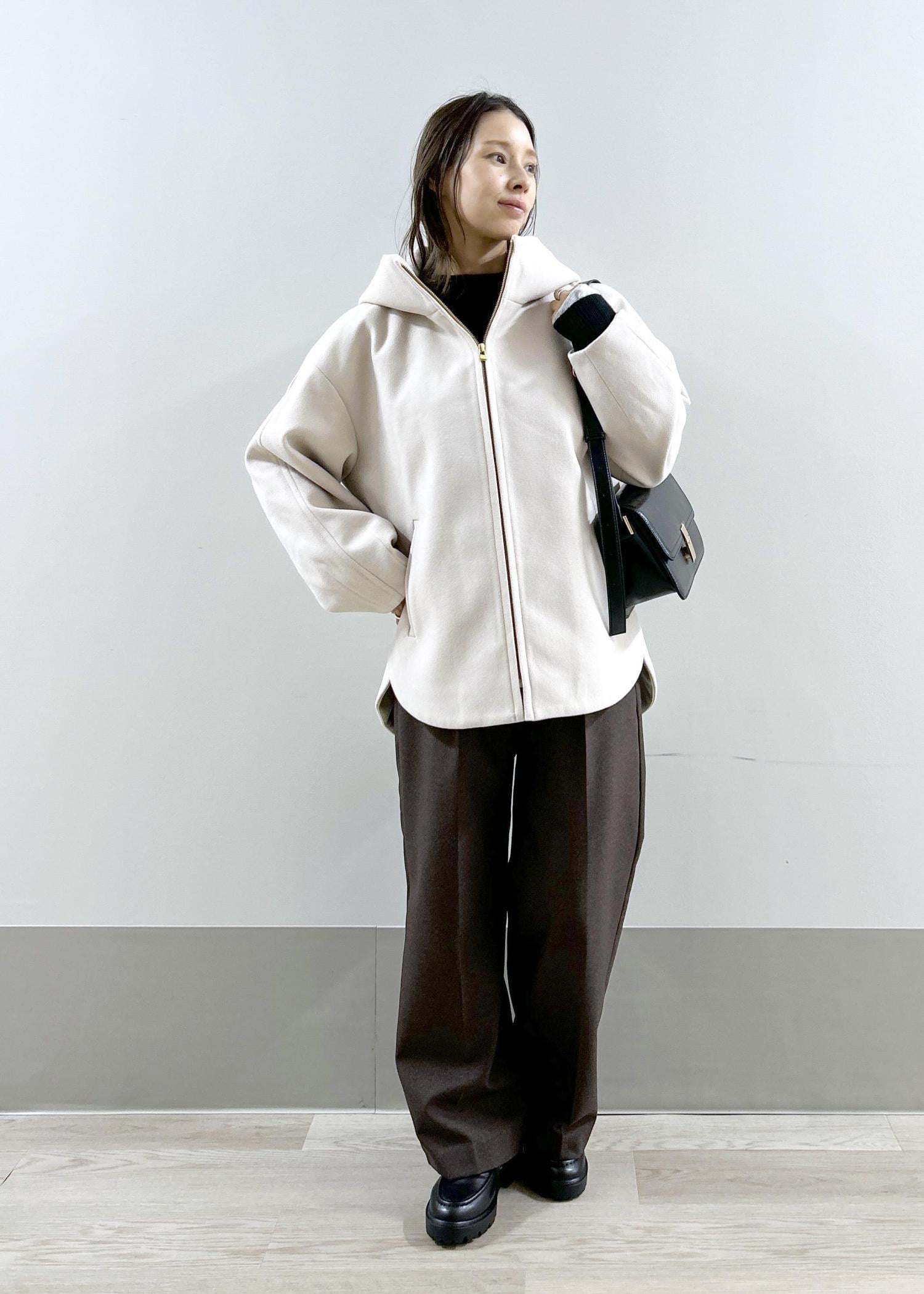 人気のスタンドカラーにもなるアウターを綺麗めなコーディネートと合わせて着てみました◎