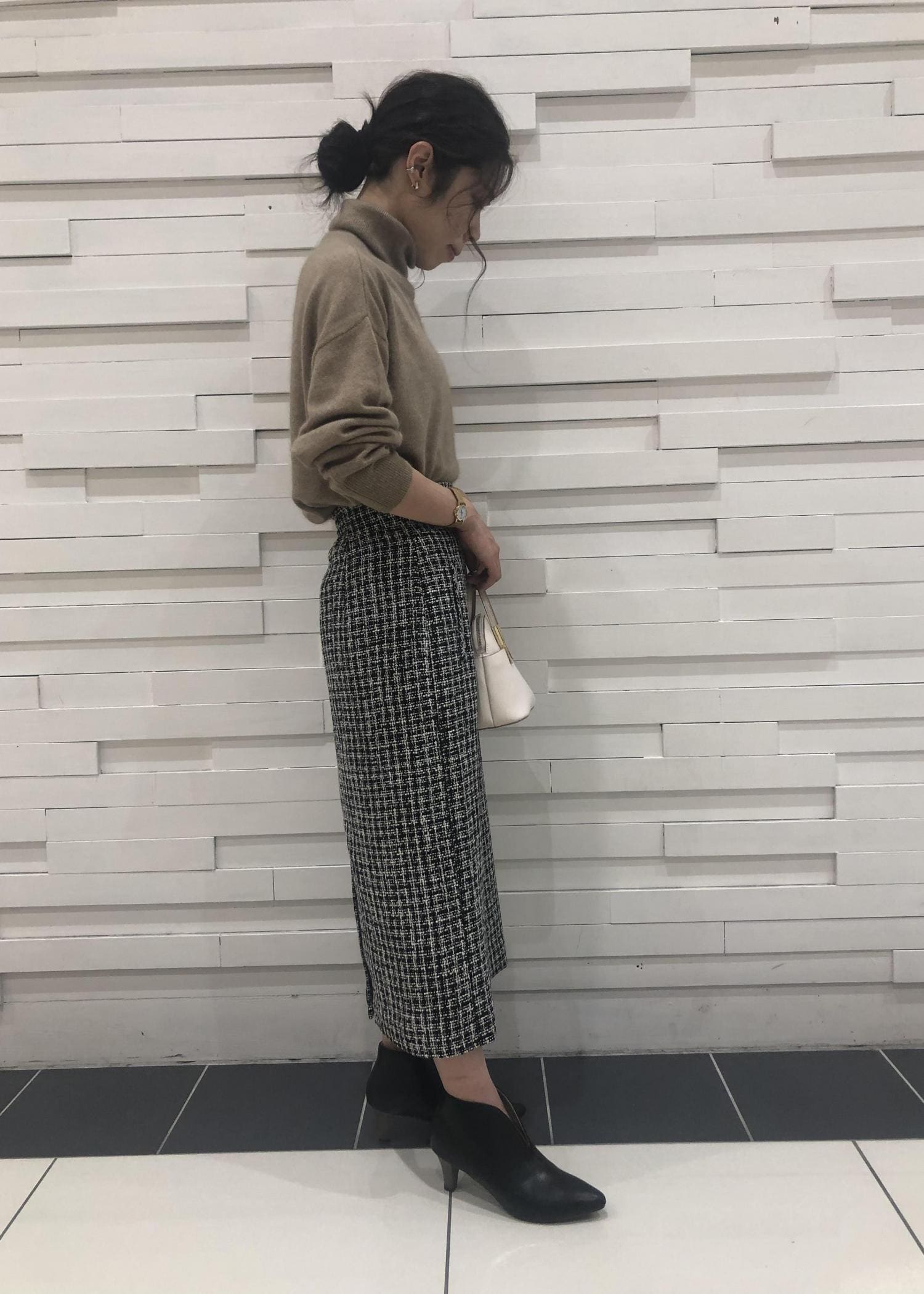 綺麗めな雰囲気のハイゲージニットやウールニットなどと合わせて頂くとより女性らしい雰囲気になります。