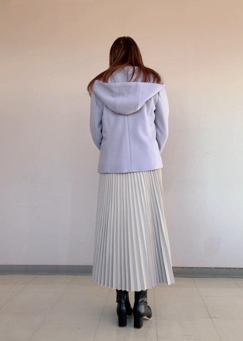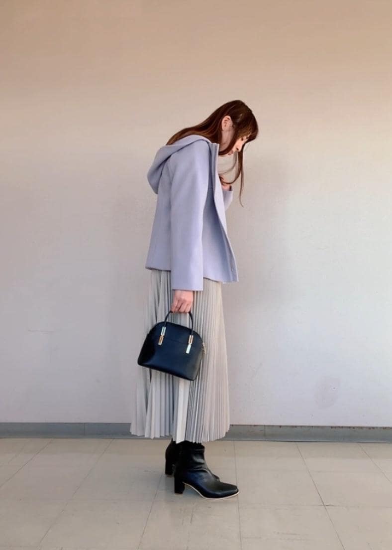 高みえするショートコートを使ったきちんとコーデです。ラクーンを使ったタートルネックとロングのフェイクレザースカートは暖かく、寒い日にもおすすめのコーディネートです。